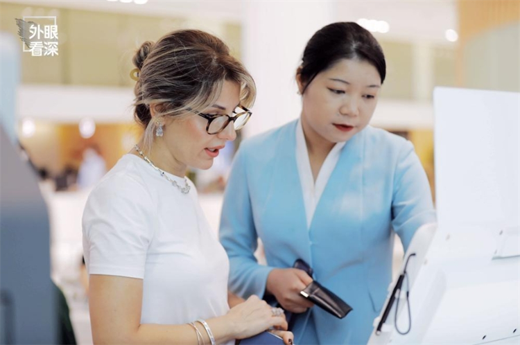 在河套深港科技創新合作區e站通綜合服務中心,福田區政務服務和數據管理局工作人員向Rash展示了外籍人員如何一站式便捷申請各種證件,簽證的操作。Rash表示,這裏的操作以及外語人員的服務高效、便捷、溫馨,讓她體會到賓至如歸的感覺。