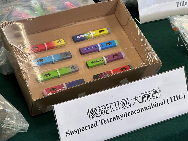 海關毒品調查科機場調查課高級調查主任何健麟表示,在11月初透過與海外執法機構交換情報,在機場和市區截獲4宗由美國寄往香港的貨物,檢獲19公斤冰毒,市值約1000萬元,相信毒販從美國將貨物寄往香港的共享辦公室作中轉站,再已速遞將毒品轉運到新西蘭。另外,針對販毒集團以集運方式在市內販毒,在葵涌和大圍的集運貨倉,檢獲9公斤液態冰毒、2公斤大麻,1公斤大麻枝,市值530萬元,拘捕一名男子(50歲),相信是其中一件貨件的收貨人。
