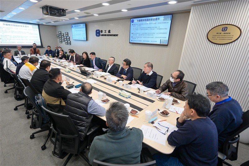 勞工處與業界共同探討如何提升使用外牆棚架工作的安全。政府新聞處