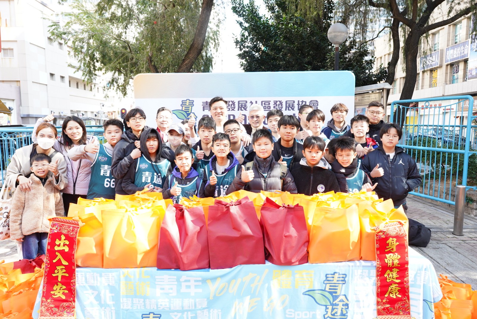 青途發展社區發展協會今日(8日)發起「新春愛心送暖行動」。青途主席鄭泳舜聯同文化體育及旅遊局副局長劉震、立法會議員劉智鵬及青途執委會成員、香港運動員、青年、家長、西九龍家長聯會等地區友好網絡,組成近100人義工隊前往深水埗探訪120戶獨居人士及低收入家庭。