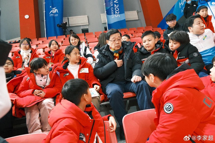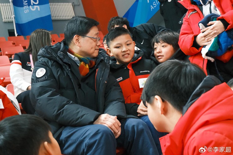 行政長官李家超今晚(8日)在社交媒體發文,指他今晚到哈爾濱體育學院大學生滑冰館觀看亞冬會女子冰球港隊對戰泰國隊的比賽,為港隊打氣。他說,港隊女將努力拼搏,展現出「香港精神」。同場他邀請了20名來自基層家庭的香港小學生共同觀賽,讓學生們體驗和學習運動員永不言敗和團隊合作的拼搏精神,並運用在學業以至人生旅途上。