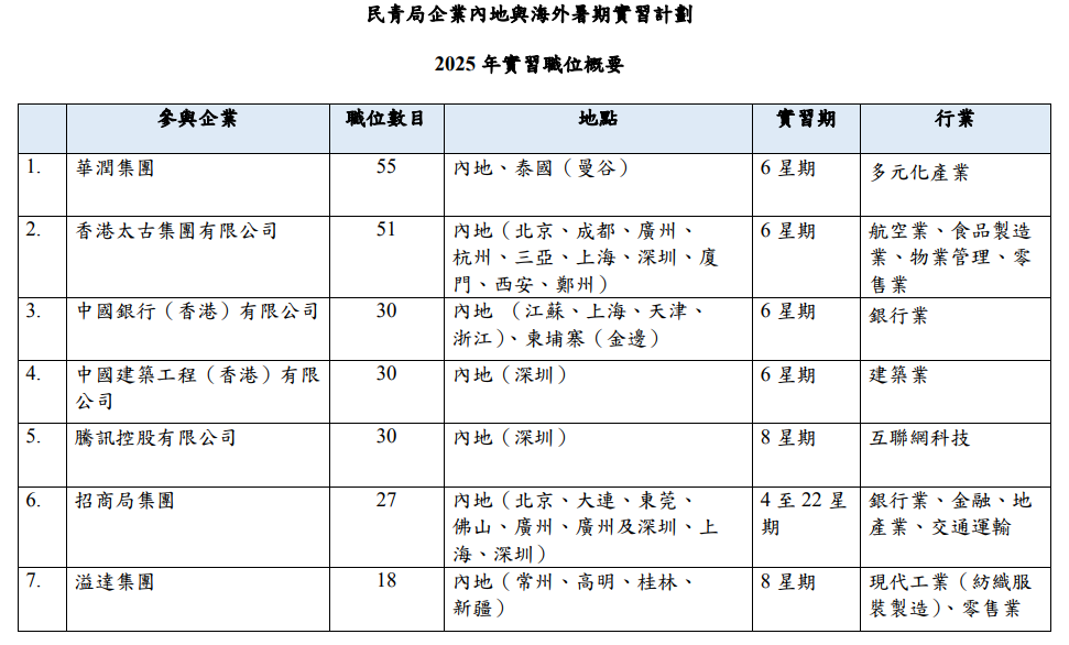 政府今日(13日)宣布,與28間大型企業合作,推出民青局企業內地與海外暑期實習計劃2025,為香港青年提供優質的內地和海外暑期實習機會,共同推動青年發展。