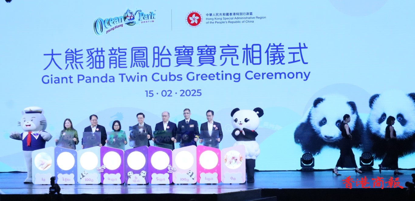 李家超在儀式上宣布,由文化體育及旅遊局主辦、海洋公園協辦的大熊貓龍鳳胎寶寶命名比賽今日展開。市民可於今日中午起透過網上提交名字建議,3月7日截止,上半年內公布結果。有關比賽的細則、提交參賽作品的方法、評審準則等詳情,請瀏覽海洋公園的專題網頁。