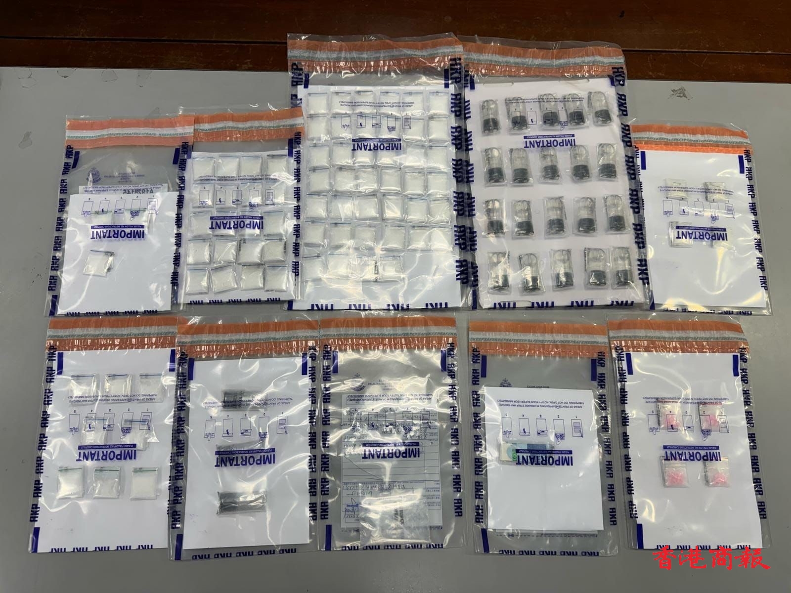元朗警區重案組第3隊林浩賢督察今日(21日)表示,元朗特別職務隊昨日至天水圍一幢村屋突擊搜查,檢獲560毫升液態依托咪酯、12粒「太空油」毒品煙彈、1.3公升可製「太空油」毒品煙彈的甘油、500克氯安酮及60克俗稱「喪屍藥」的卡西酮,市值約41萬元;另檢獲「太空油」毒品製毒工具,包括量杯、煲、針筒、電子磅及大量未使用煙彈;拘捕單位內2男1女(31至64歲),分別報稱文員及無業,涉嫌「製造危險藥物」及「販運危險藥物」罪。