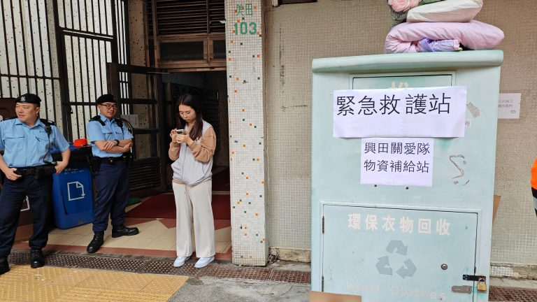 區議員聯同關愛隊義工協助警方通知美田樓住戶前往登記。