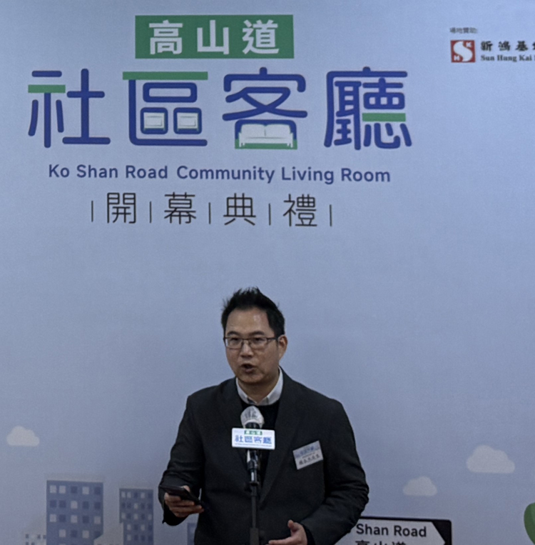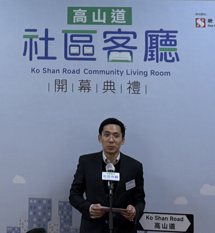 社區關愛基金主席楊永杰作出3個感謝,第一是多謝特區政府,因為沒有其支持不可能開設到這社區客廳,而作為地區服務前線,在新時代新階段下更加要做服務提供者和參與者,並相信這次社區客廳是地區服務團隊邁出的重要一步。第二要感謝兩個贊助機構,沒有它們支持是不可能擁有這麼漂亮實用的客廳,能好好地服務本區劏房人士。最後會感謝合作夥伴,九龍社團聯會有超過45萬會員遍布整個九龍,不少的會員都是劏房戶,而透過聯會網絡能更好地為劏房群體提供更加關懷和適切服務。他相信「高山道社區客廳」於政府商界與服務團體共同努力下,將為地區治理作出更大貢獻。