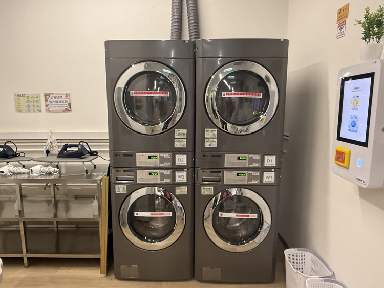 圖為洗衣區,提供自助洗衣和乾衣設備。