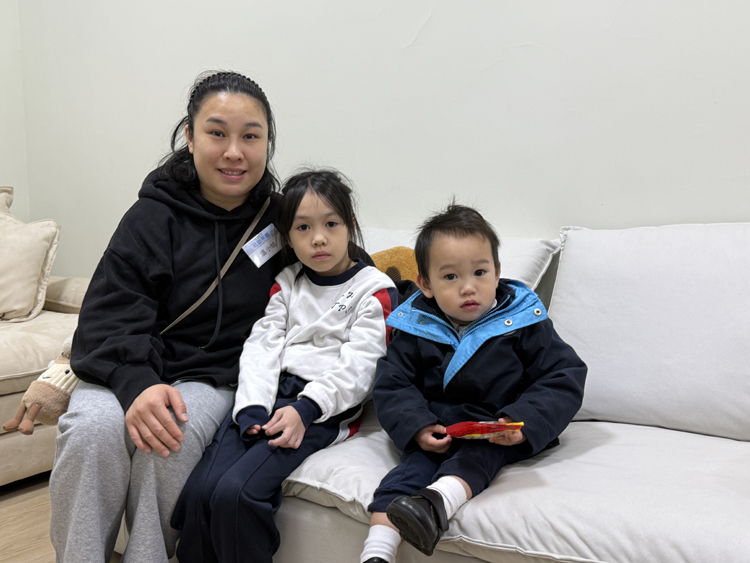 圖為社區客廳用戶溫小姐和兩位子女。
