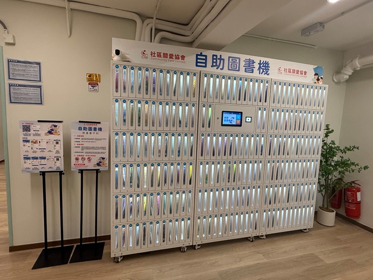 社區客廳設有自助圖書機,每次可借閱兩本書,借閱期限為14天。