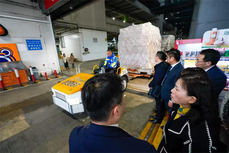 行程的另一亮點是視察由「香港國際機場東莞空港中心」的貨物,以水路運抵本港後,再利用空運轉送到世界各地的「海空貨物聯運」流程。機管局現時正利用位於東莞和香港國際機場的臨時設施就「海空貨物聯運」模式進行先導計劃,並同時全力發展「香港國際機場東莞空港中心」永久設施,目標於年底完成空港中心第一期首階段建設。陳美寶說,十分期待在空港中心在啟用後能讓「海空貨物聯運」發揮更大效益,進一步發揮香港的空運中轉樞紐功能。