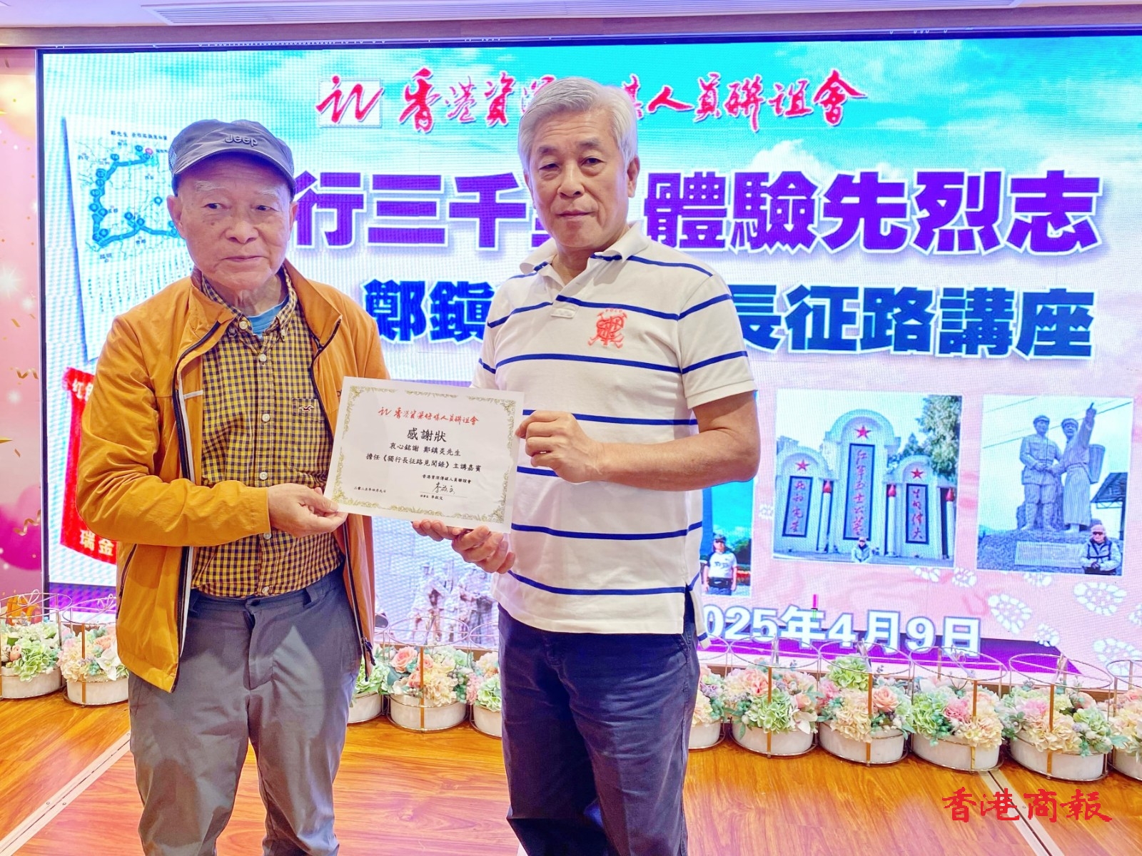 資深傳媒人鄭鎮炎去年10月至今年3月初,從紅軍長征起點江西出發,沿長征路線徒步經行廣東、湖南、廣西、貴州、四川等地直達雲南,行程3361公里。重踏紅軍長征路,鄭鎮炎的家國情懷、意志和毅教力值得大大發揚。香港資深傳媒人員聯誼會今日(9日)假銅鑼灣舉行《鄭鎮炎獨自徒步長 征路見聞錄》講座,約150人出席,多位傳媒前高層出席。