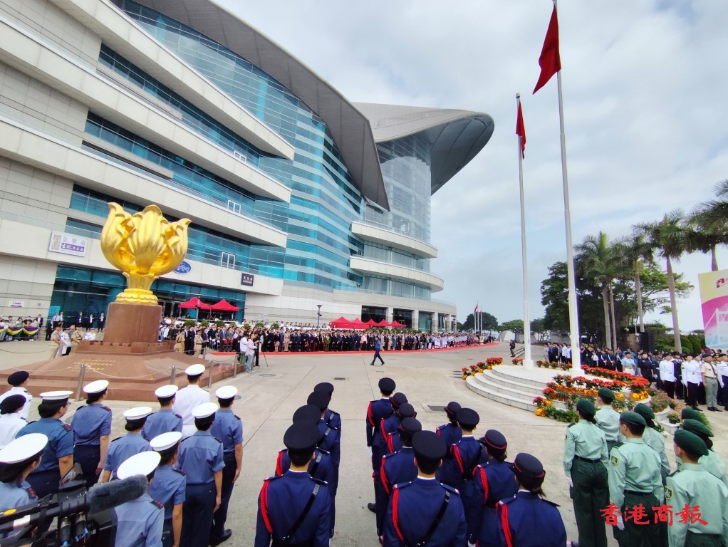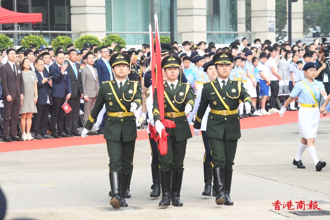 8時許,香港青少年制服團體300餘名隊員組成護旗方陣和升旗隊,以中式步操入場,升起國旗區旗。從銀樂隊、護旗隊、升旗隊的組成,以至齊集灣仔金紫荊廣場的青少年制服團隊,均展現出無窮的青春與活力。主辦方希望活動能培養青年的愛國情懷,以及對國家民族的責任感與使命感。