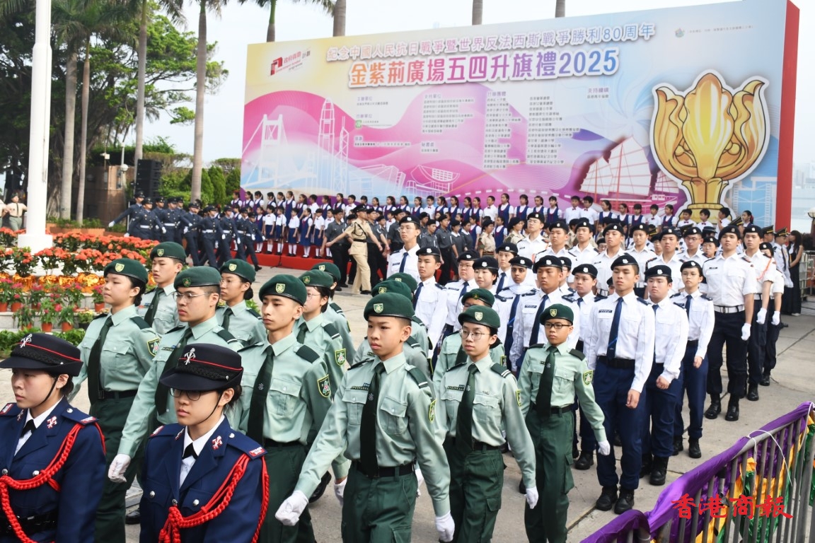 今年是五四運動106周年,同時也是中國人民抗日戰爭暨世界反法西斯戰爭勝利80周年。香港各界青少年紀念中國人民抗日戰爭暨世界反法西斯戰爭勝利80周年「金紫荊廣場五四升旗禮」今早(4日)在港舉辦。