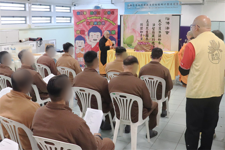 懲教署表示,一直積極與各界夥伴攜手助更生,在不同院所舉辦多元化宗教活動,其中包括為在囚人士帶來正念和支持的佛教活動。昨日(5日)適逢佛誕日,赤柱監獄、羅湖懲教所及石壁監獄分別在院所舉辦浴佛法會,由法師主持和帶領浴佛儀式,讓在囚人士透過浴佛淨心,開展正念人生。(記者 區天海)