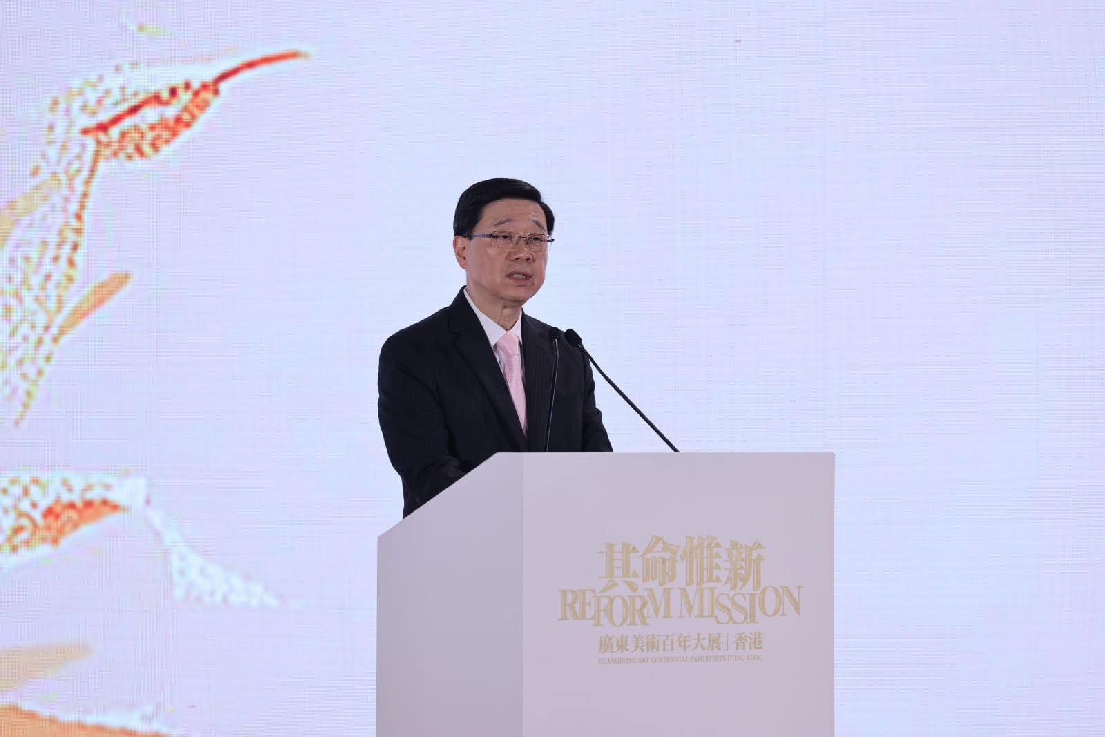 行政長官李家超今日(22日)出席「其命惟新——廣東美術百年大展(香港)」開幕式致辭時表示,在國家「十四五」規劃下,香港正發展成中外文化藝術交流中心,發揮「一國兩制」下內聯外通優勢,傳承中華文明底蘊,讓中國藝術的壯闊山河,透過香港走向國際舞台。