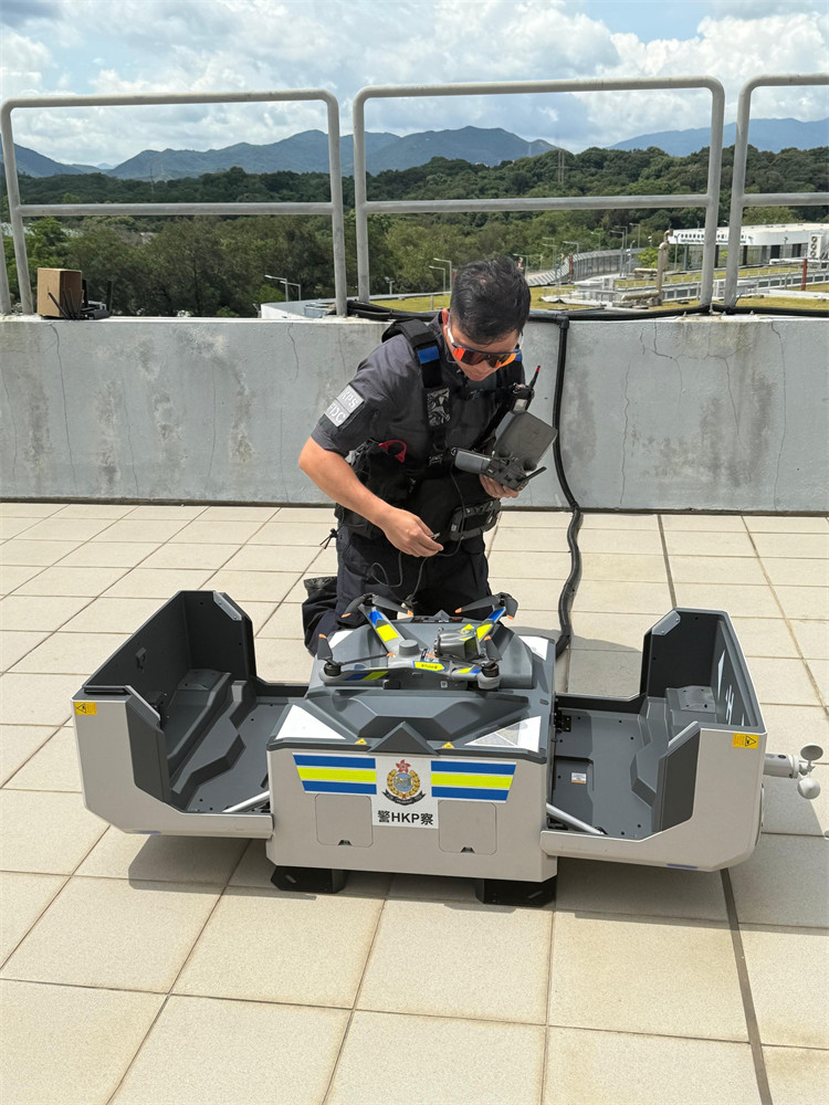 邊界警區指揮官劉經倫總警司今日(23日)率領邊界警區人員見證小型無人機啟航。邊界警區因涵蓋大量鄉村及山林地帶,傳統巡邏需時較長,使用無人機巡邏,時間可以由1小時縮短至約10至20分鐘,提升打擊罪案能力。而高空監察有助偵察及防止爆竊、偷盜等犯罪活動,並能即時追蹤犯案者逃跑路線,支援地面警力部署,提高執法成效。