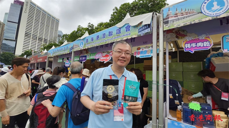 青海港澳聯誼會也有擺檔,會長吳漢忠表示,產品以接近成本價售賣,不是以盈利為目的,包括100元3包氂牛肉、20元4包青海湖鹽等,市民可以免費試食氂牛肉,他說氂牛肉含有的營養價值比普通牛肉為高,市民能夠嘗試到青海高原特色食物,希望「佢哋買得開心,食得放心」。