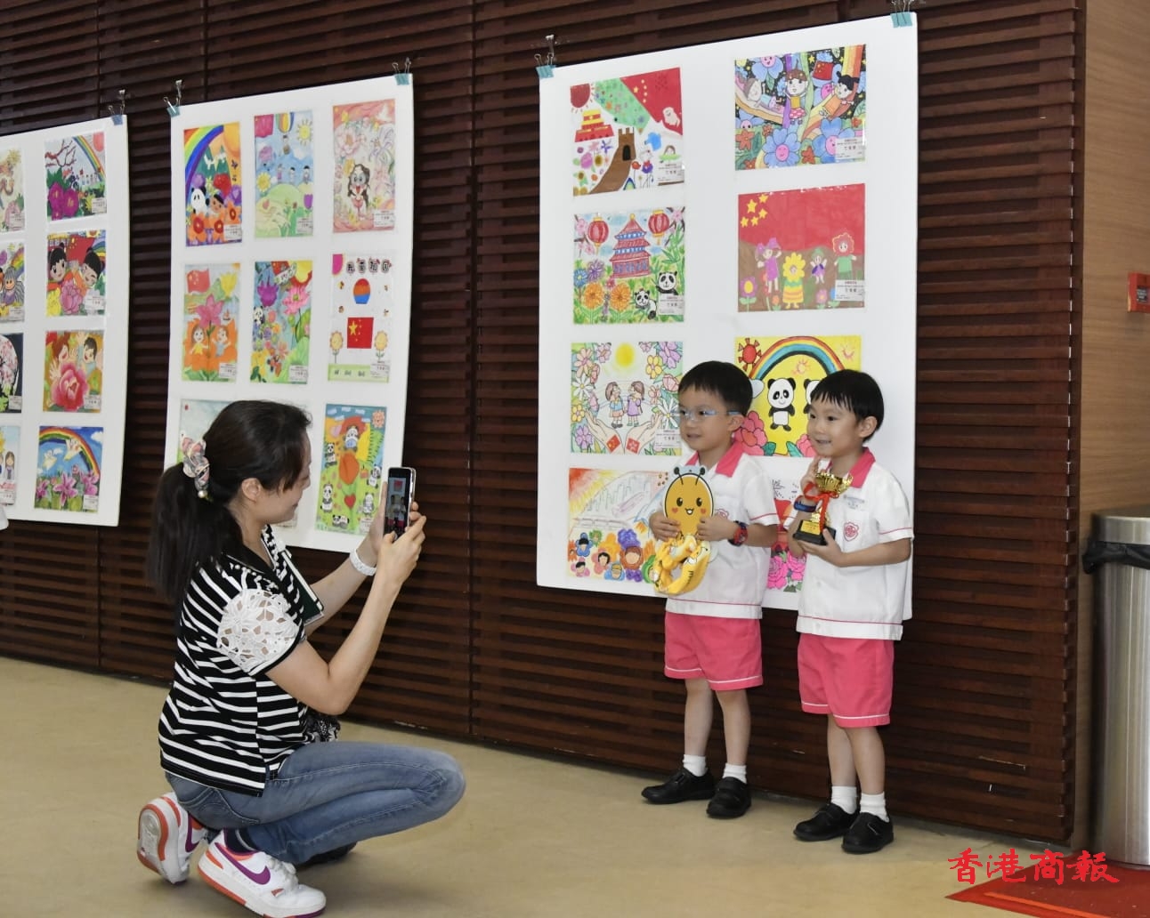「祖國的花朵」第四屆金紫荊盃全港兒童繪畫大賽由藝術香港主辦;香港河源社團總會、仁濟醫院聯合主辦機構。Mrs Bee,香港日月星文創禮品、香港島校長聯會、九龍地域校長聯會、新界校長會、香港直接資助學校議會協辦;大公報、文匯報、點新聞、中國日報香港版、中新社香港分社、香港商報、香港中通社、鏡報、知識雜誌、廣東電視台香港記者站、羊城晚報報業集團香港記者站擔任媒體支持機構。(圖:蔡啟文攝)