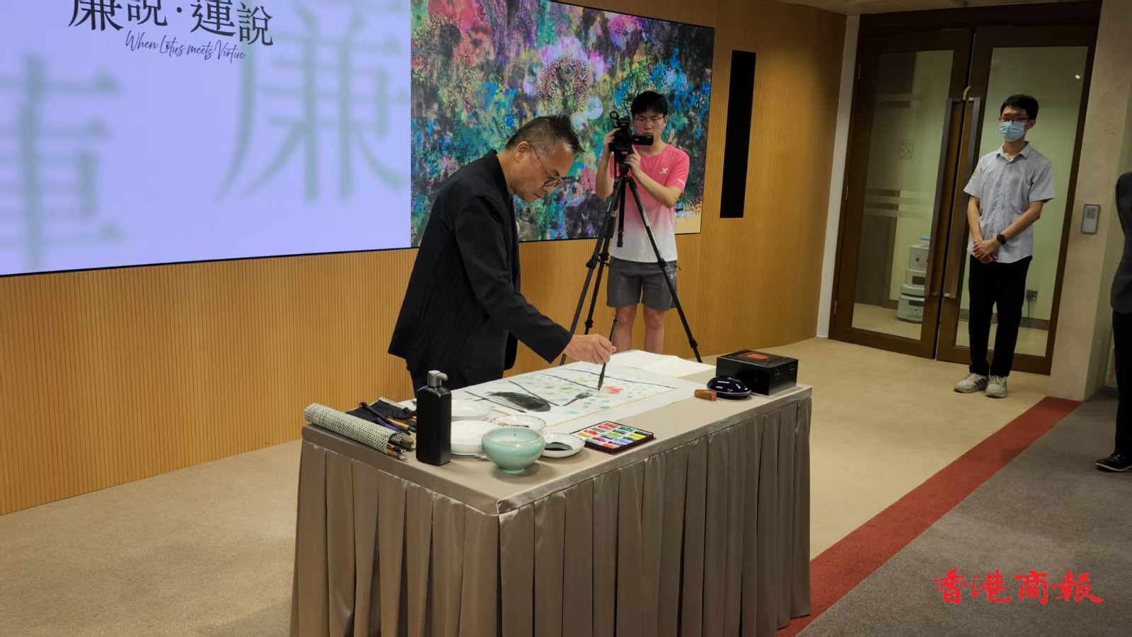 麥偉強說,林天行最擅長繪畫蓮花,由他創作的「天行荷」,擺脫技巧束縛,自成一格,而荷花即是蓮花,自古以來被譽為「花中君子」,象徵出淤泥而不染,代表着君子不與世俗同流合污的美德,與廉署推崇的廉潔價值互相呼應。