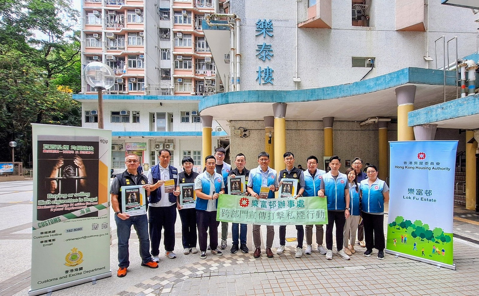 海關持續進行跨部門反私煙宣傳活動,昨日(5日)與黃大仙區區議員、衞生署控煙酒辦公室、警務處及房屋署在黃大仙樂富邨進行巡查及宣傳。海關人員向屋邨保安人員、居民及商戶講解發現懷疑私煙活動時的舉報方法,並介紹政府提高私煙相關罪行罰則的修例建議。