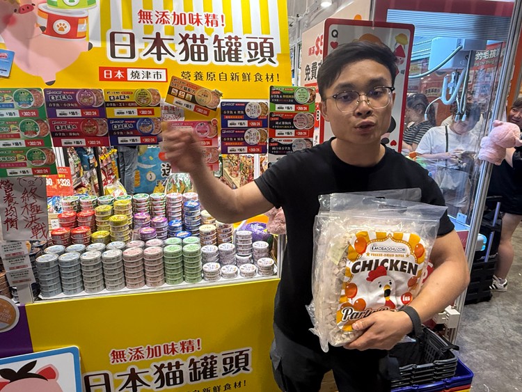 「優質寵物用品展」2025於今日至星期日(8日)舉行,今日和明日(7日)開放時間為中午12時至晚上9時,星期日開放時間為中午12時至晚上8時。展覽有眾多寵物用品品牌參與,食品方面,有展商推出自取價500元3包1公斤凍乾,買滿500元還可夾公仔,分開獨立包裝於第一天展期都較受歡迎,而韓國貓罐頭無添加味精,一罐體積較小,容易進食。大部分客人都購買超過500元,因可夾公仔之餘還有豬豬大禮包,包括很多不同小食和 罐頭。創新用品設計方面,有展商帶來全港首創的夏日感應式涼風墊,結合靜音風扇與涼感外套,適合家居與戶外使用,外出時需使用充電器,涼風墊更可自主使用,貓隻坐上去才啟動。