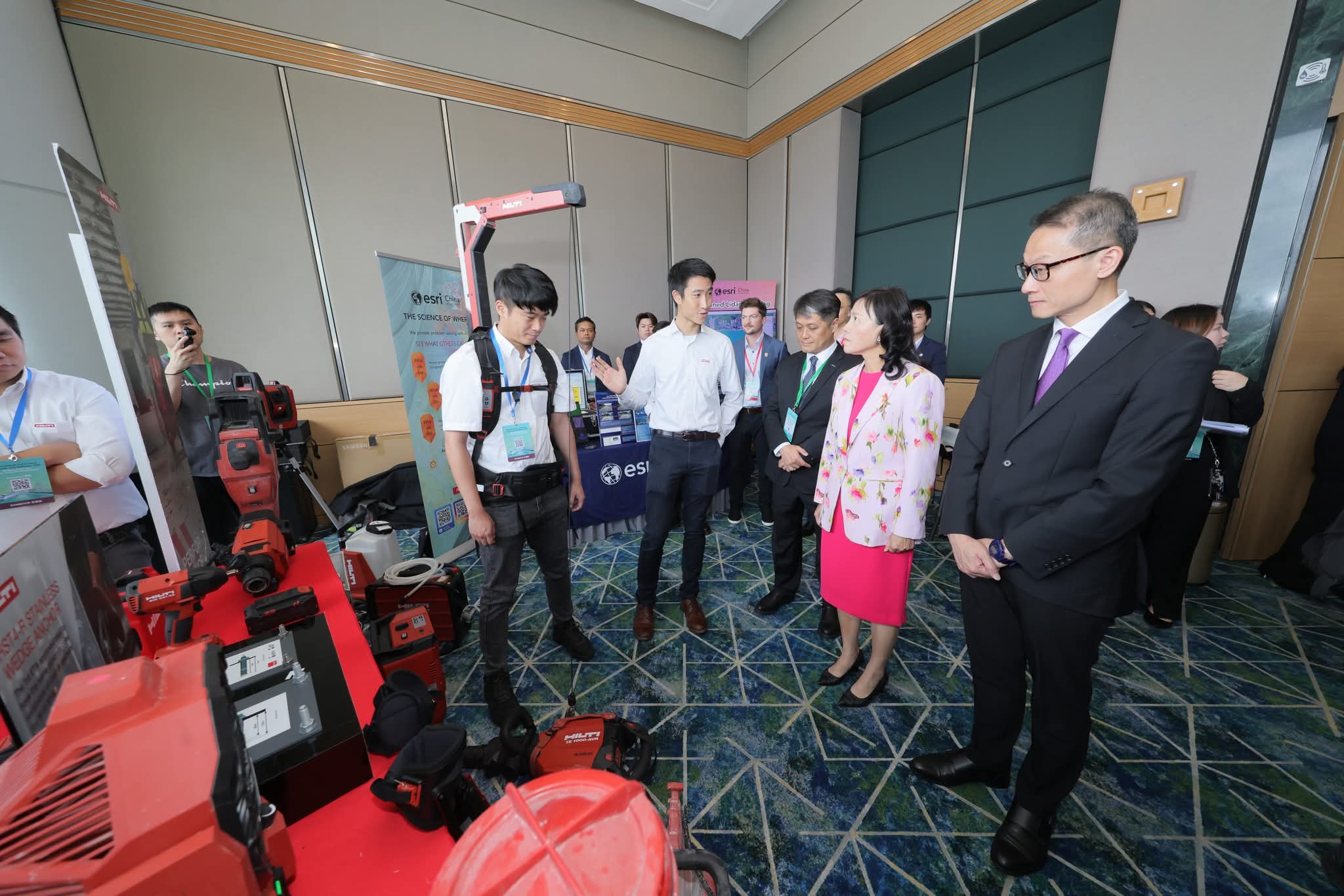 陳美寶亦與多位官員,和年青工程師交流互動,了解業內新血對香港基建發展的願景和期許。她之後再到訪業界攤位參觀,了解業內在運輸基建的建設與維護上最新的科技應用。