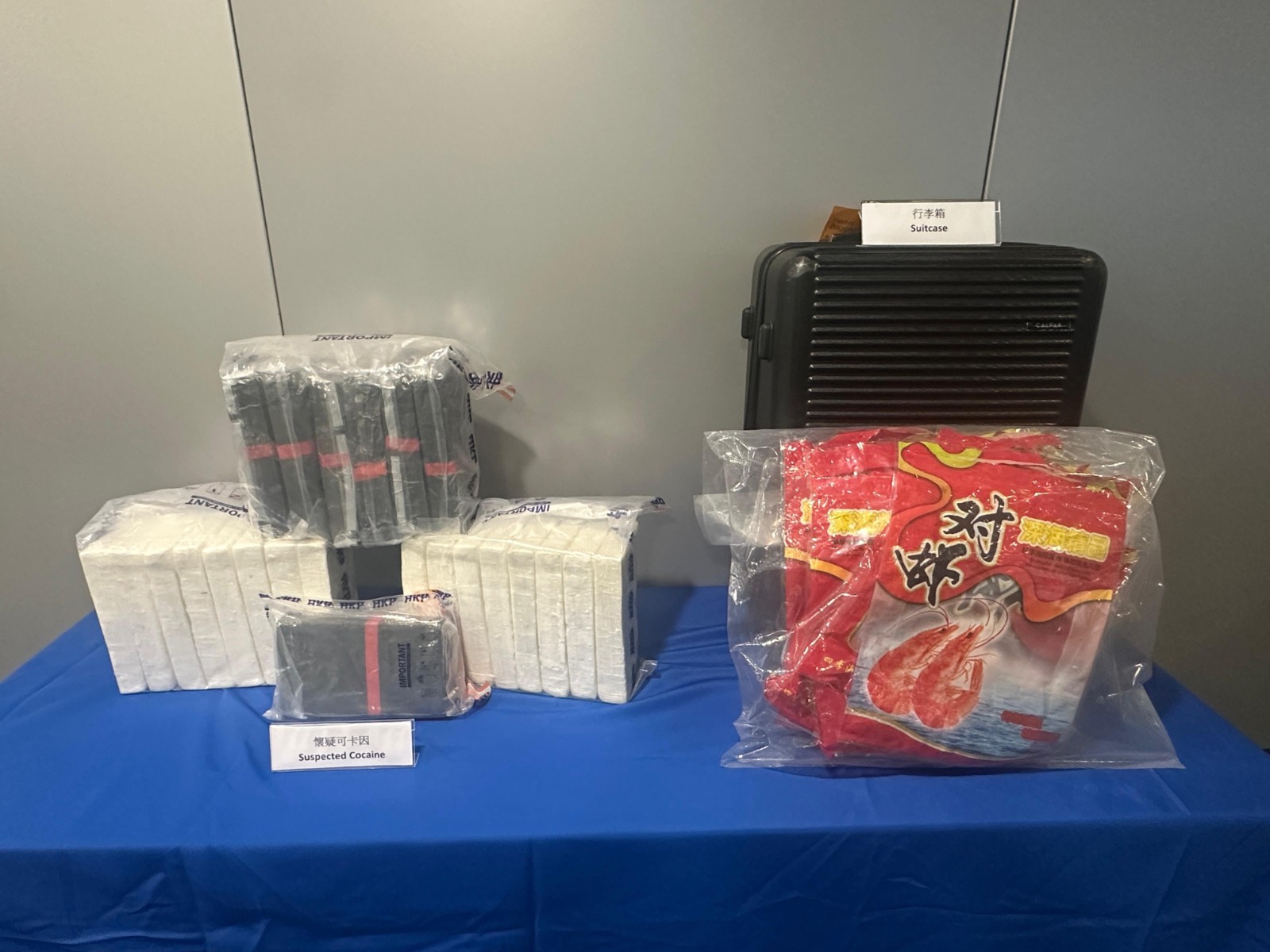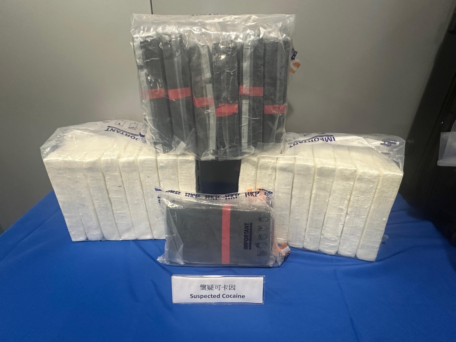 警方毒品調查科行動組高級督察陳裕詠今日(17日)表示,昨日早上探員根據情報,在機場入境大堂截查一名剛從美國三藩市入境香港的男子,在海關人員協助下搜查男子的行李,並在行李中搜出23磚、每磚約重1公斤的懷疑可卡因,隨即將該名男子拘捕。
