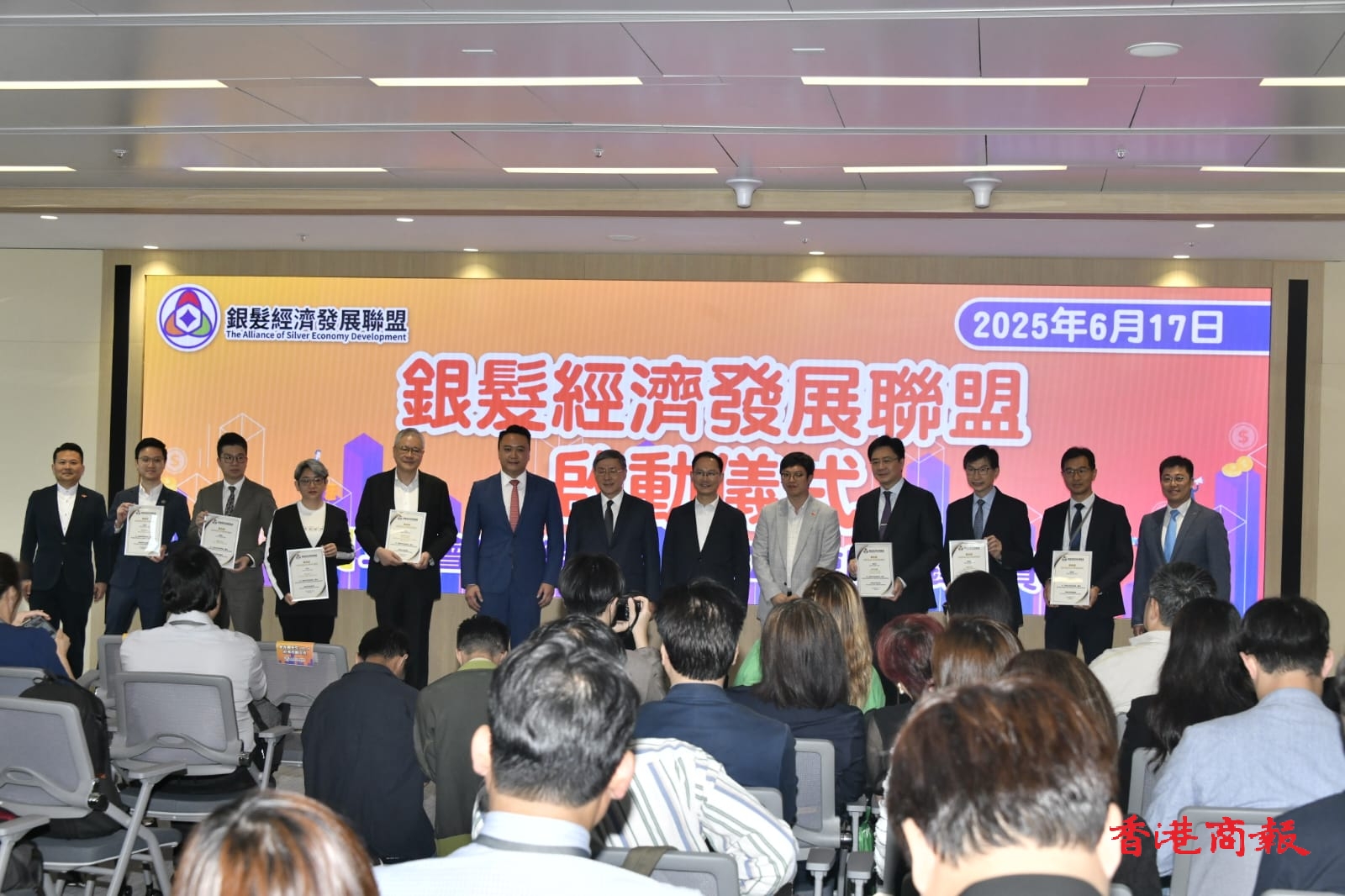 為協助推動香港發展銀髮產業,民建聯立法會議員李世榮及陳學鋒最近牽頭成立「銀髮經濟發展聯盟」,並於今日(17日)上午在立法會大樓舉行啟動儀式,政務司副司長卓永興及勞工及福利局副局長何啟明擔任主禮嘉賓,頒發委任狀並致辭。