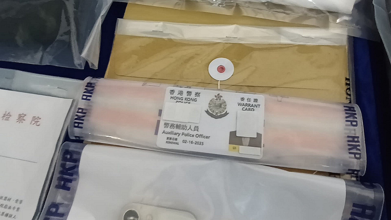 昨日,警方展開拘捕行動時,被捕人身穿西裝向一名受害女子展示香港警察委任證和法庭拘捕令,行動中在其手機中發現多個偽造文件的電子檔案,並在其家中搜出打印機,被捕人聲稱受詐騙集團操控,收取1萬元報酬。(記者 區天海)