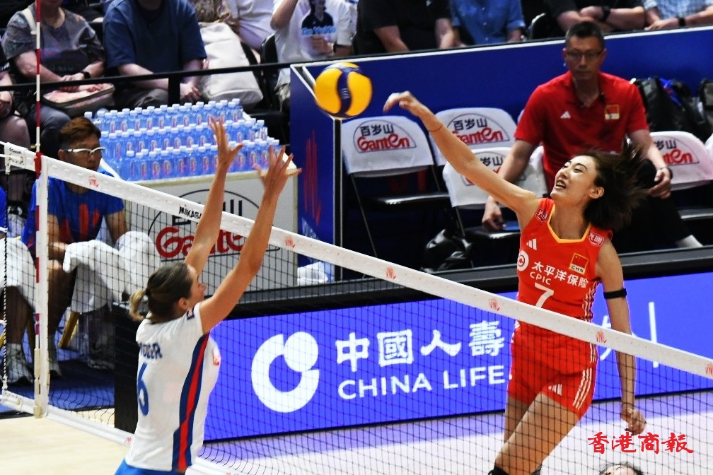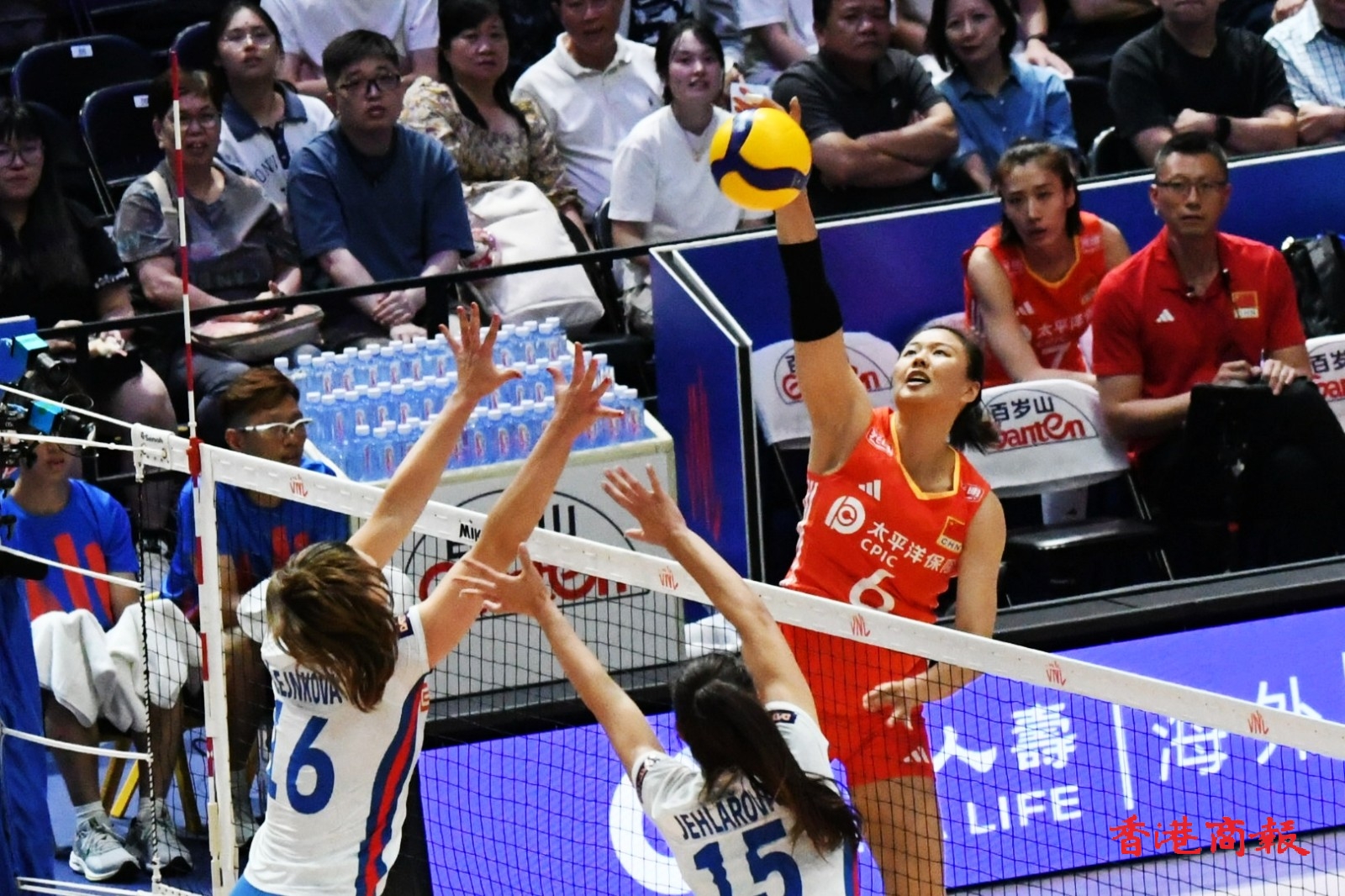 2025世界女排聯賽香港站今日(18日)在啟德體育園體藝館舉行,晚上中國女排對戰捷克女排,以3-1(29-27、23-25、25-15、25-22)戰勝對手,收獲本站開門紅!(記者 馮瀚文攝)