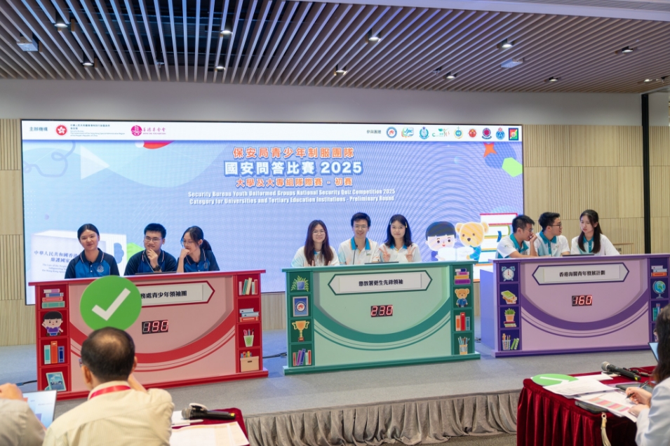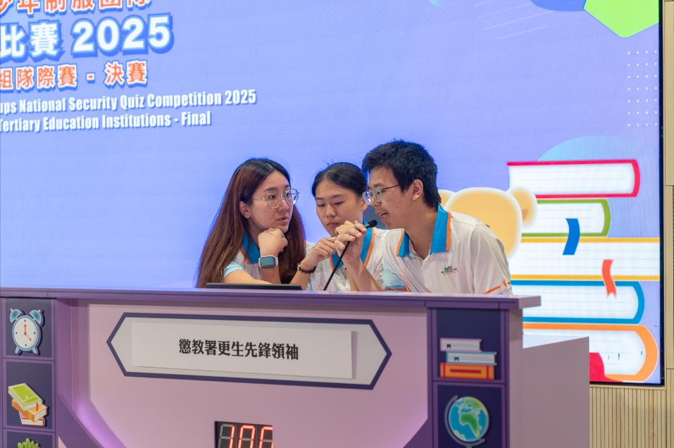 保安局早前舉辦「青少年制服團隊國安問答比賽」,懲教署青少年制服團隊更生先鋒領袖派出代表參賽,經過一輪知識較量後,先鋒領袖隊員最後在多個制服團隊中脫穎而出,晉升決賽並勇奪季軍。