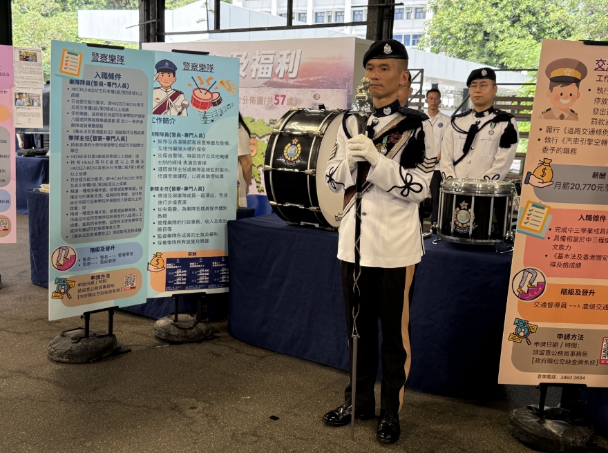 周紫彤續指,技考警隊的人數在過去3個財政年度持續上升,由2022-23年度7997份申請,去到2024-25年度12479份申請,按年上升超過兩成半,並留意到越來越多年輕人投考警隊,30歲或以下投考人數由2022-23年度5308人上升到2024-25年度有8900人,可見不少新一代都希望加入警隊,負起守護香港的使命。至於警隊在2025、2026年度的招募目標是130名見習督察和1140名警員,這數字是根據行動需要、訓練資源、整體社會環境和勞動市場情況等因素制定。她更形容年輕人是社會的未來,警隊其中一項重點招募策略是聚焦在大學生,一向都為香港、內地和海外學生進行一個招募快線,招募組在5月和6月到訪廣東和福建舉行內地大學的招募快線活動,亦會在11月到北京與上海綜合招聘考試場地招募港生。招募組透過今天(22日)這體驗日同時再舉行第二次海外大學招募快線,現在於海外快線都收到77份申請。