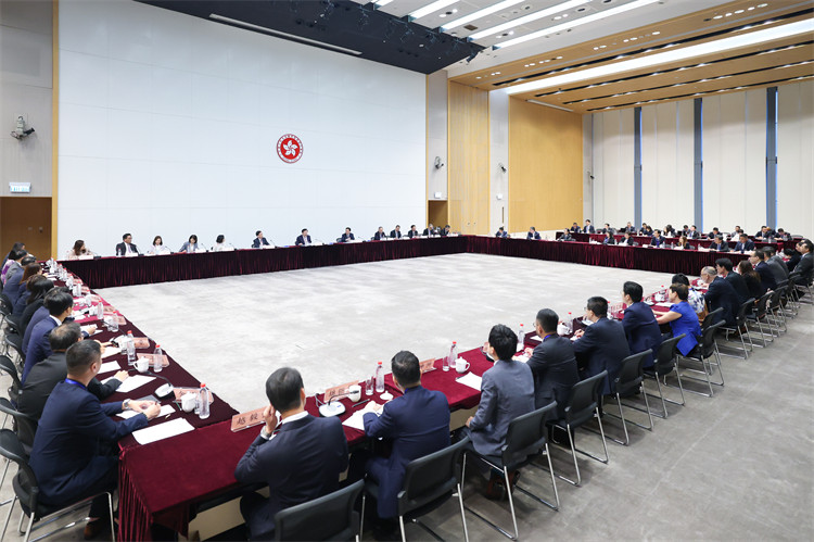 6月22日上午,中央港澳工作辦公室主任、國務院港澳事務辦公室主任夏寶龍在政府總部與香港十八區區議會主席和區議員代表座談,之後前往土瓜灣社區客廳參觀。下午,夏寶龍在香港中聯辦聽取工作匯報後,結束在港活動返回內地。(來源:中共中央港澳工作辦公室 國務院港澳事務辦公室)