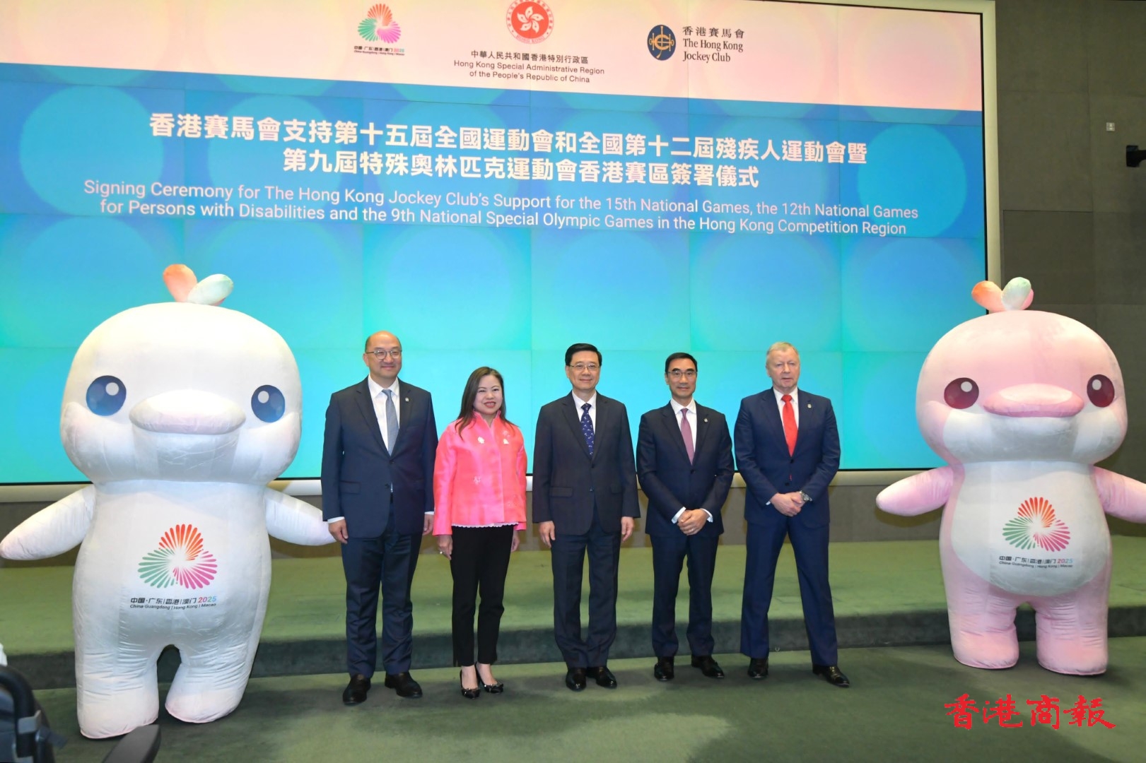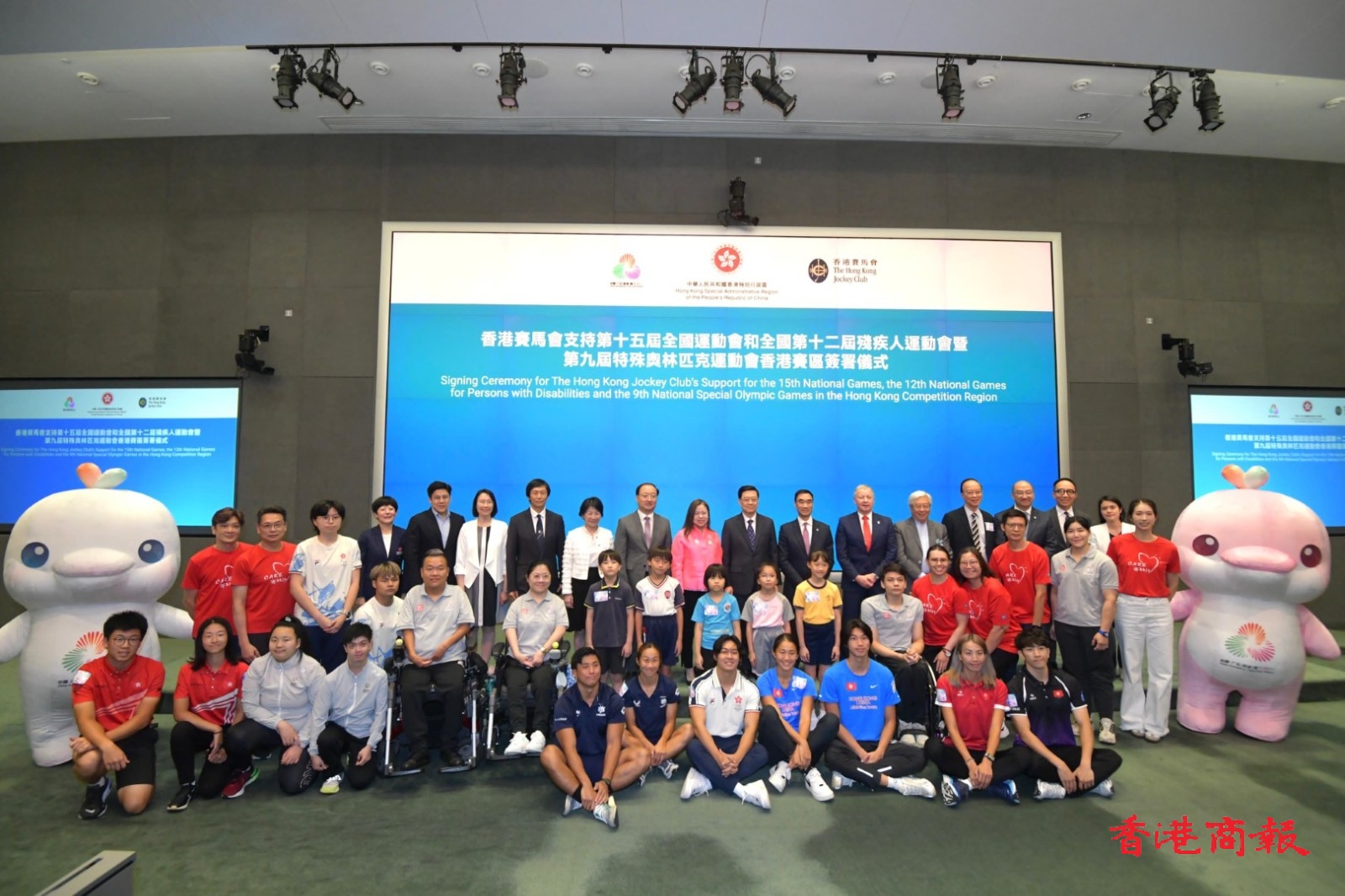 由粵港澳三地首度攜手承辦的第十五屆全國運動會(十五運會)和全國第十二屆殘疾人運動會暨第九屆特殊奧林匹克運動會(殘特奧會),將分別於今年11月9日至21日以及12月8日至15日舉行。香港賽馬會贊助香港賽區4.5億元,主要用於義工服務計劃、全港社區及學校推廣活動,以及弱勢社群與青少年觀賽體驗安排等。贊助簽署儀式今日(26日)在政府總部舉行,由行政長官李家超見證,文化體育及旅遊局局長羅淑佩與馬會行政總裁應家柏代表雙方簽署協議。