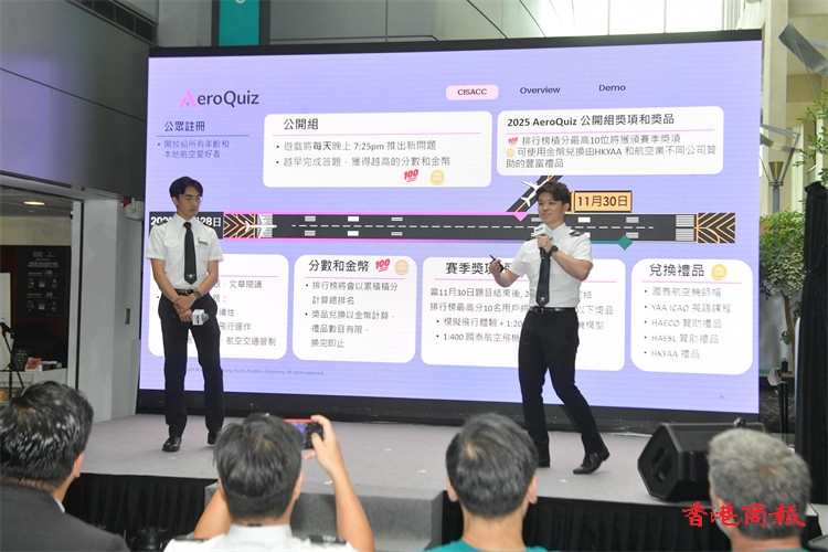 他提到,三跑系統於去年11月底開通,而航空業有很多不同工種,例如維修人員、空運物流、IT、採購等,期望藉 AeroQuiz與挑戰盃,提升市民對航空業的了解,吸引他們成為航空業的一份子。