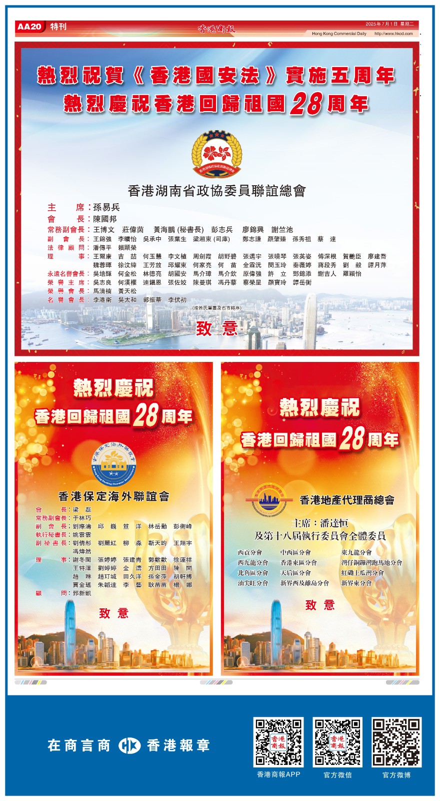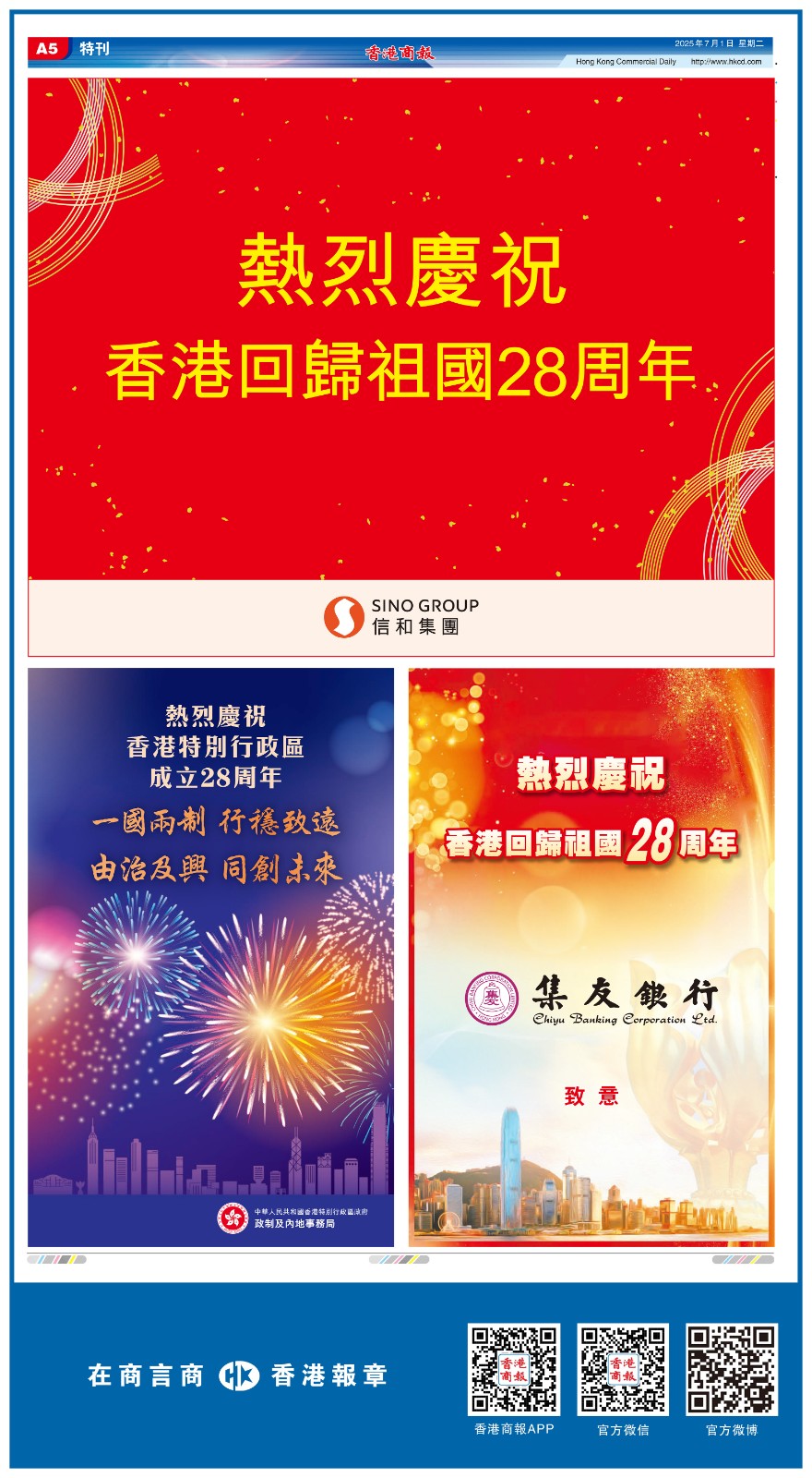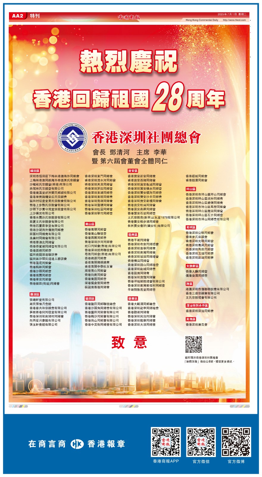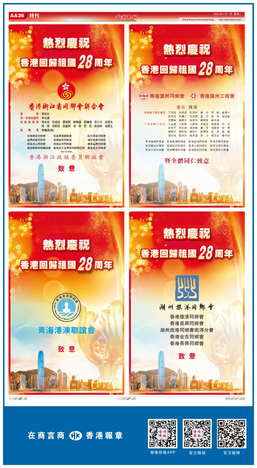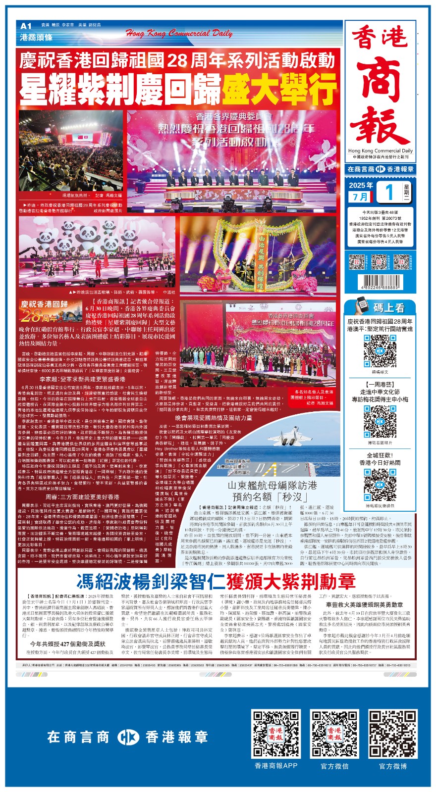 共賀香港回歸祖國28周年