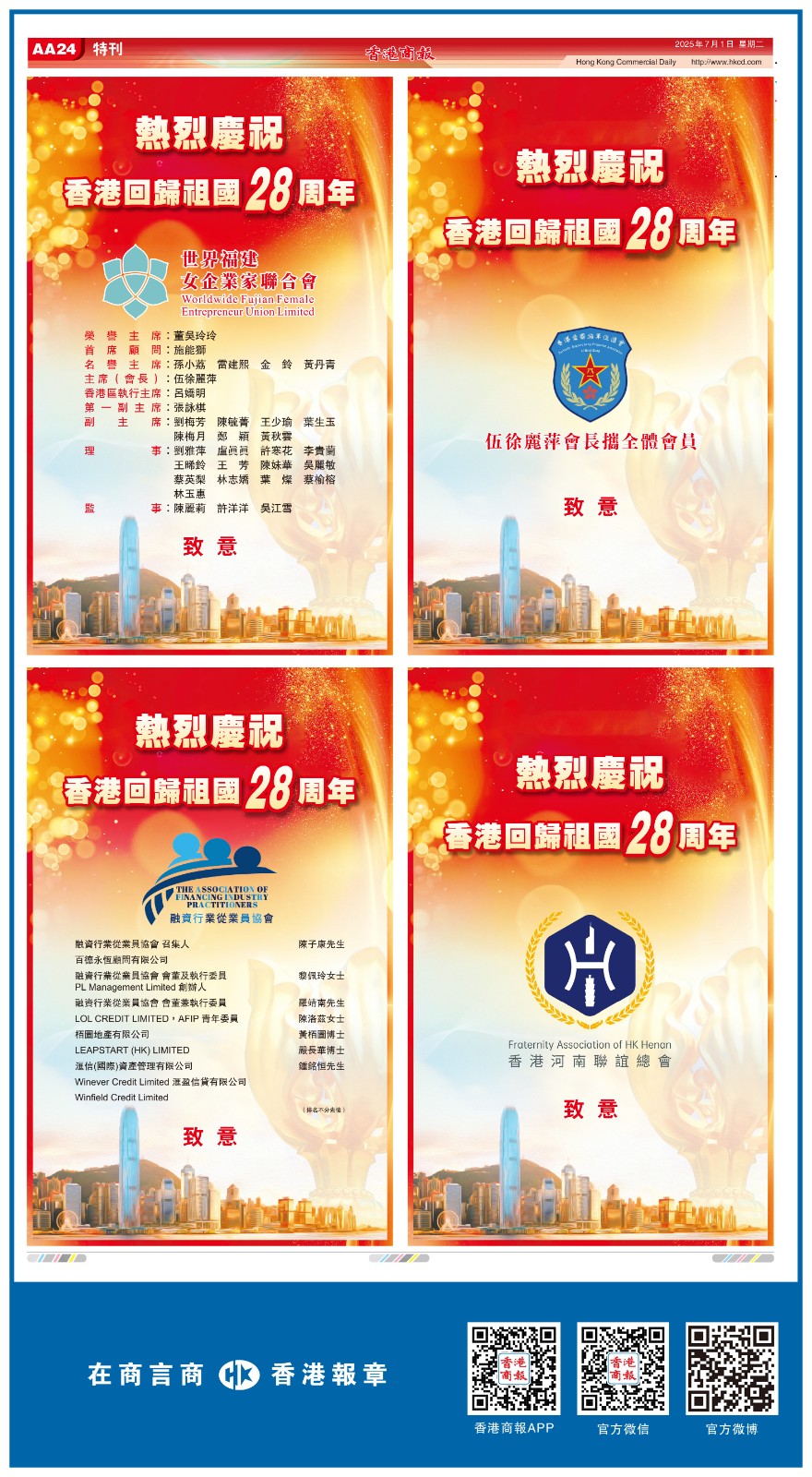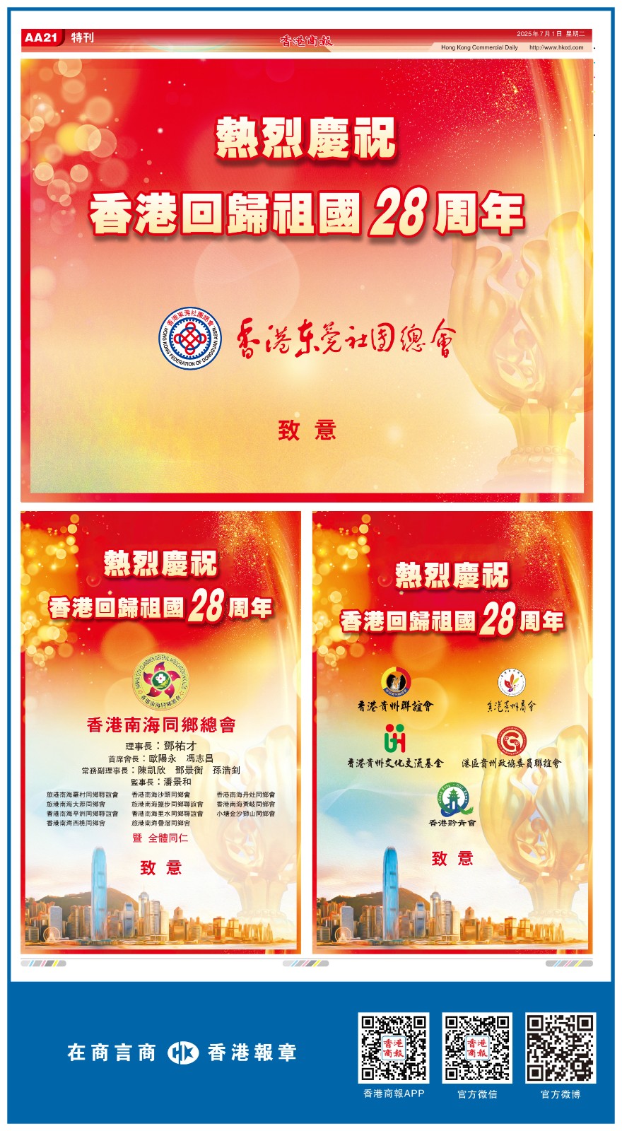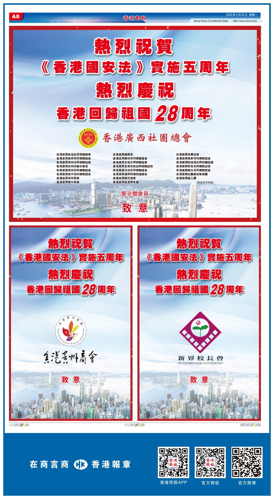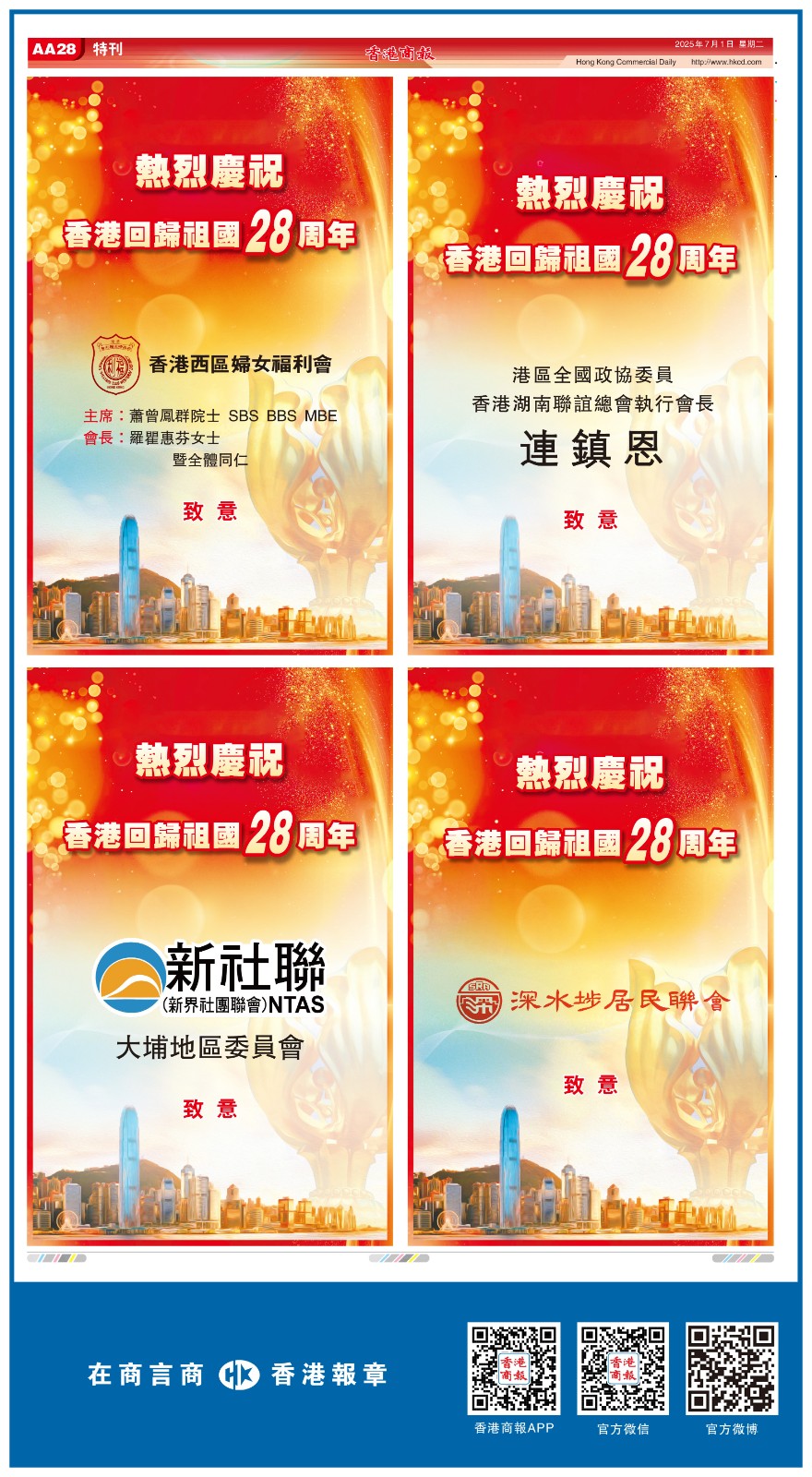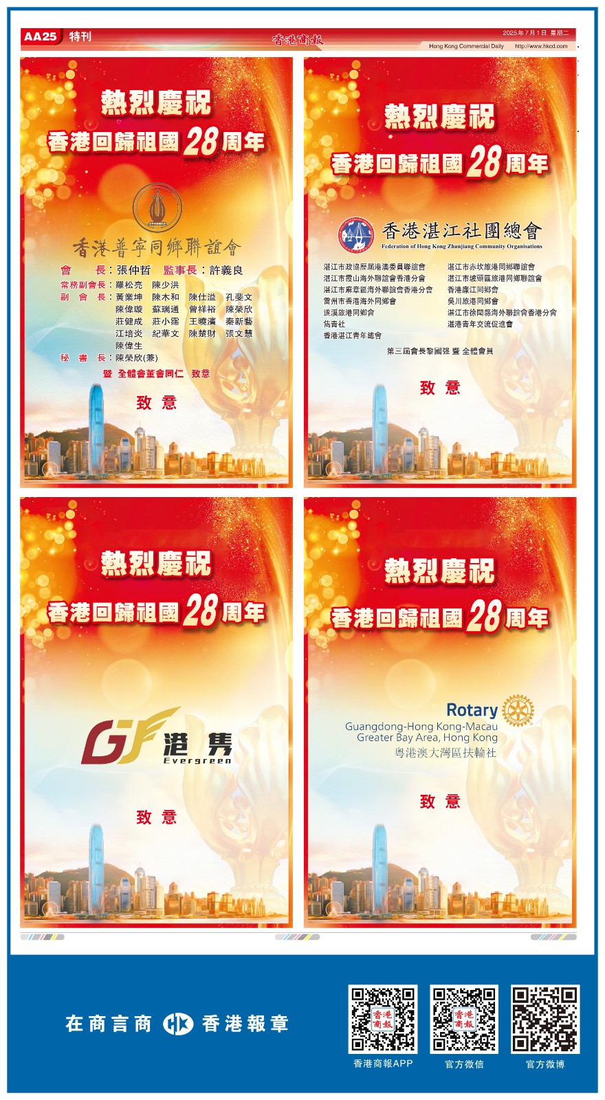 共賀香港回歸祖國28周年