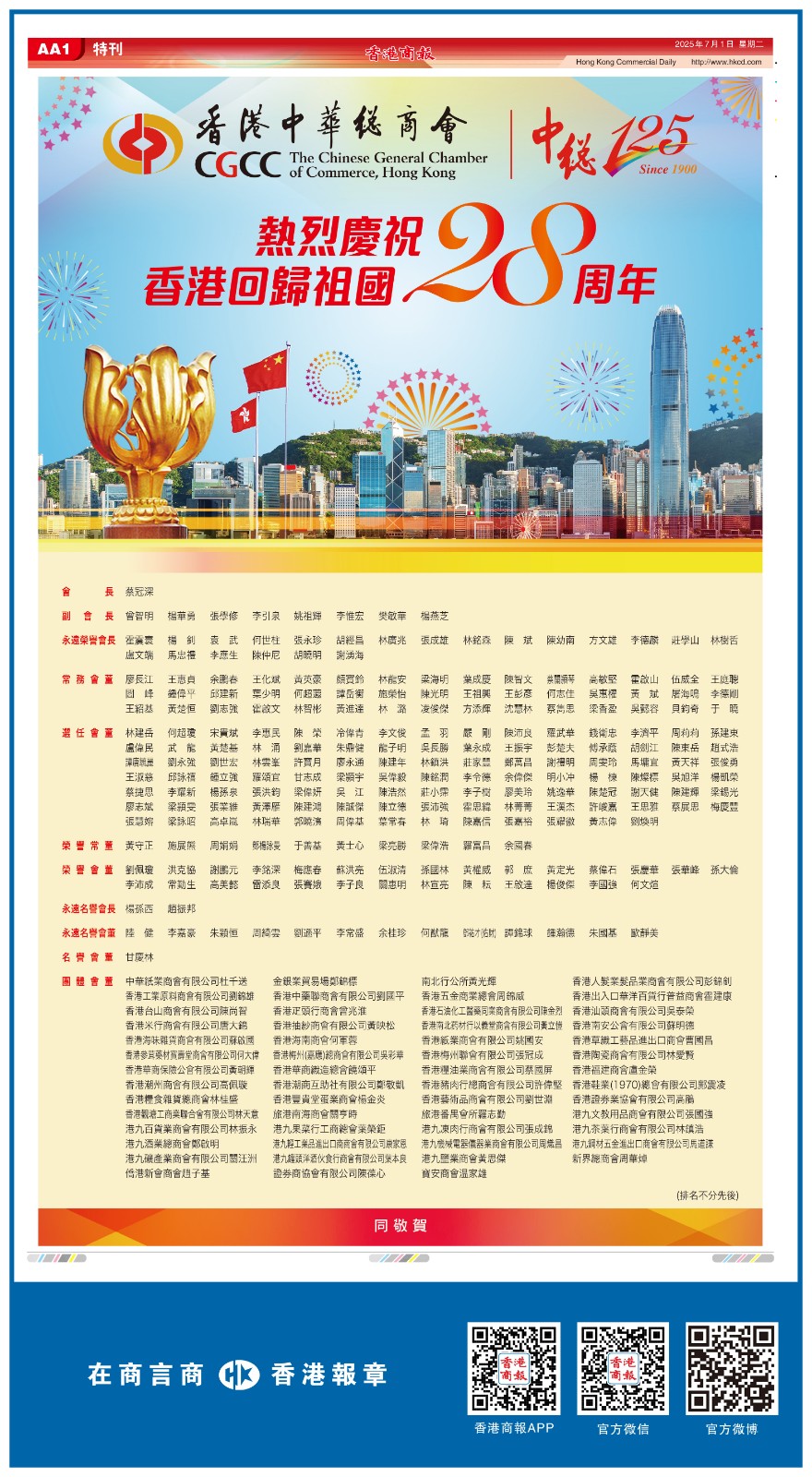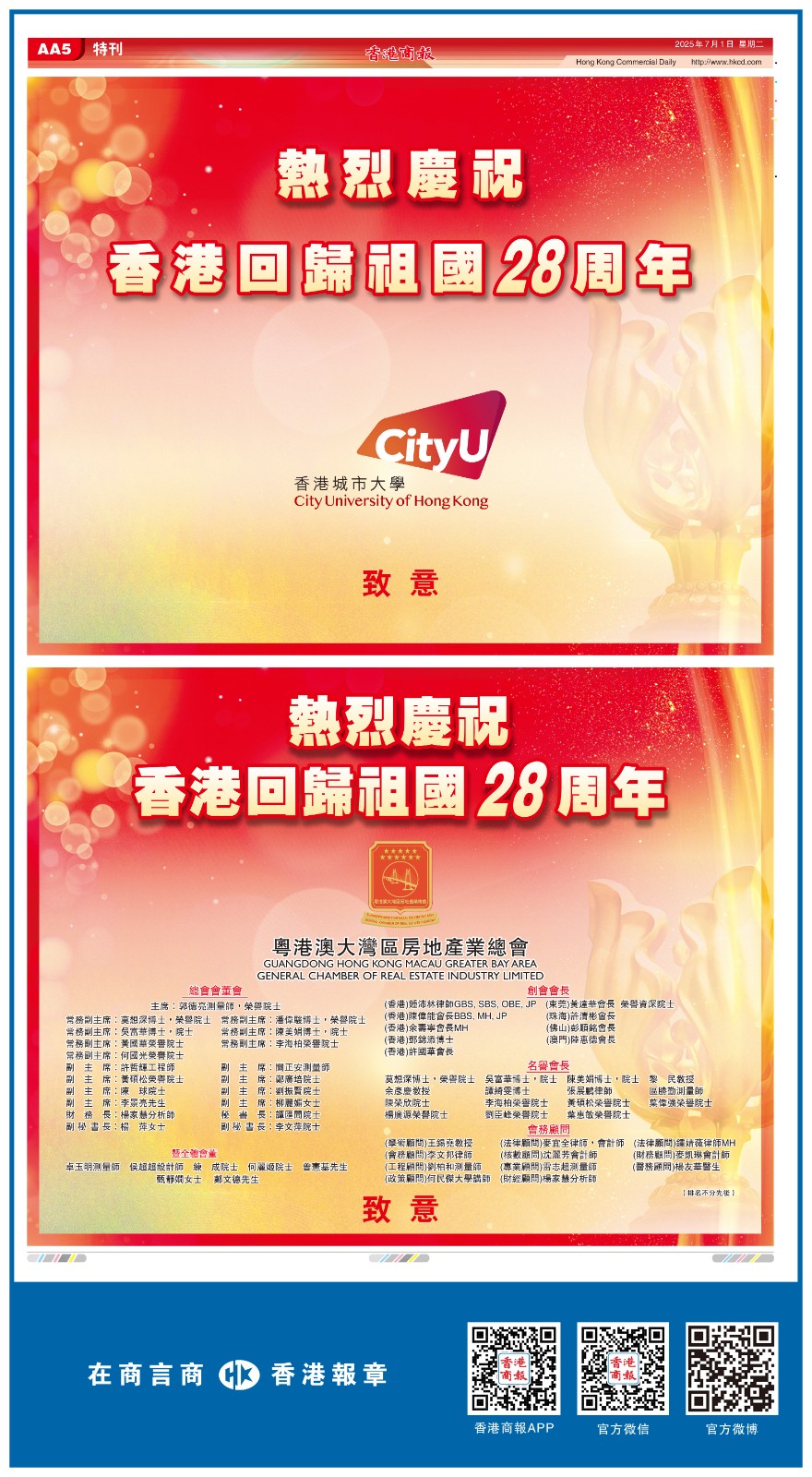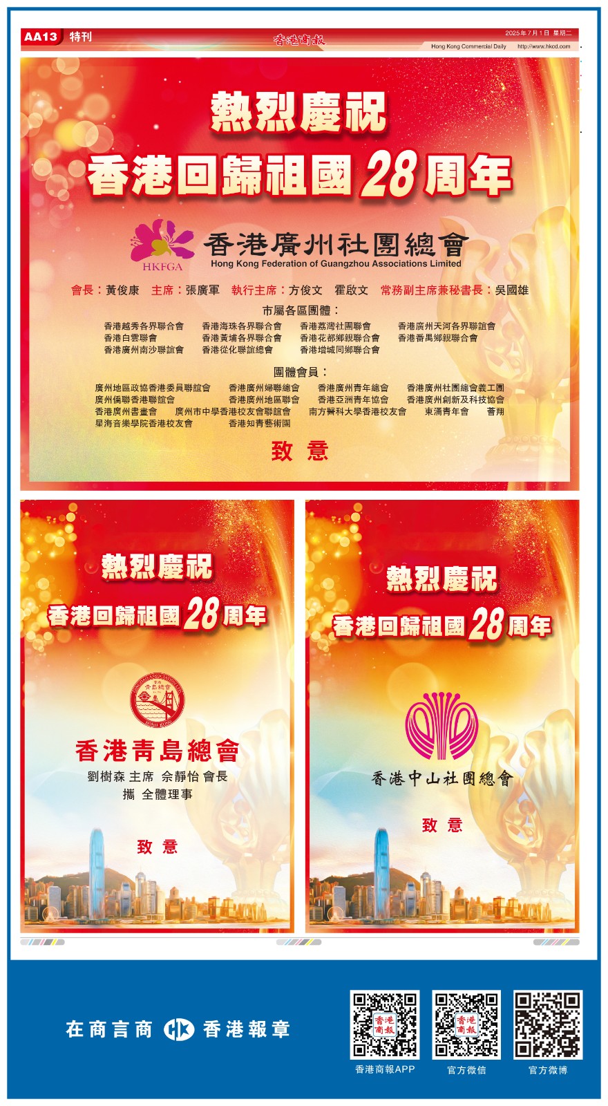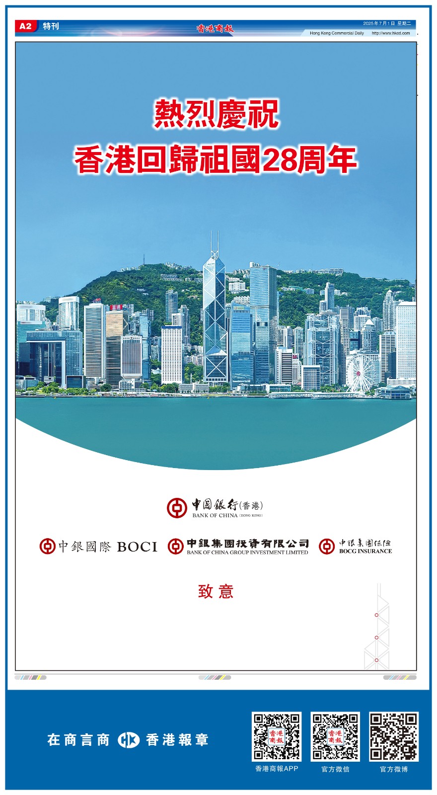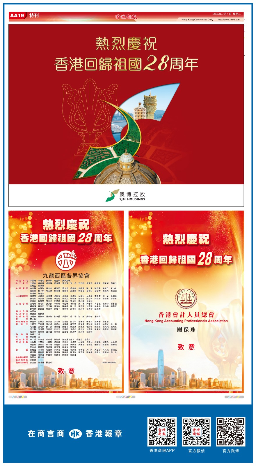 共賀香港回歸祖國28周年