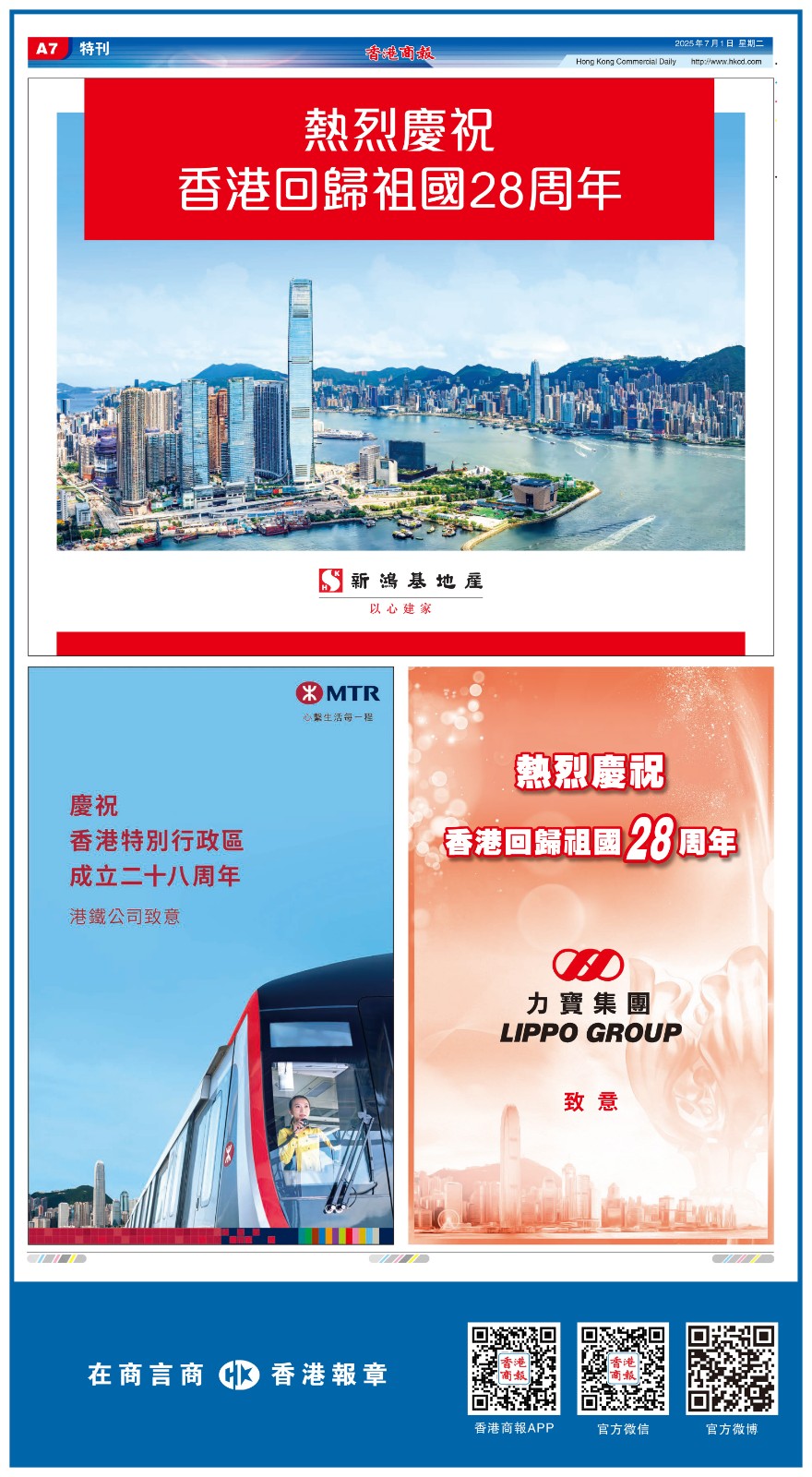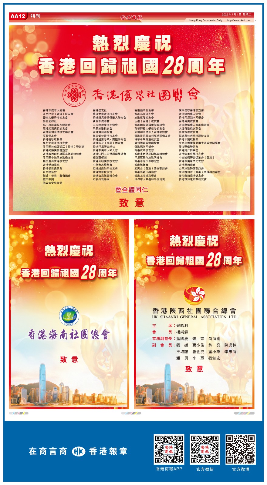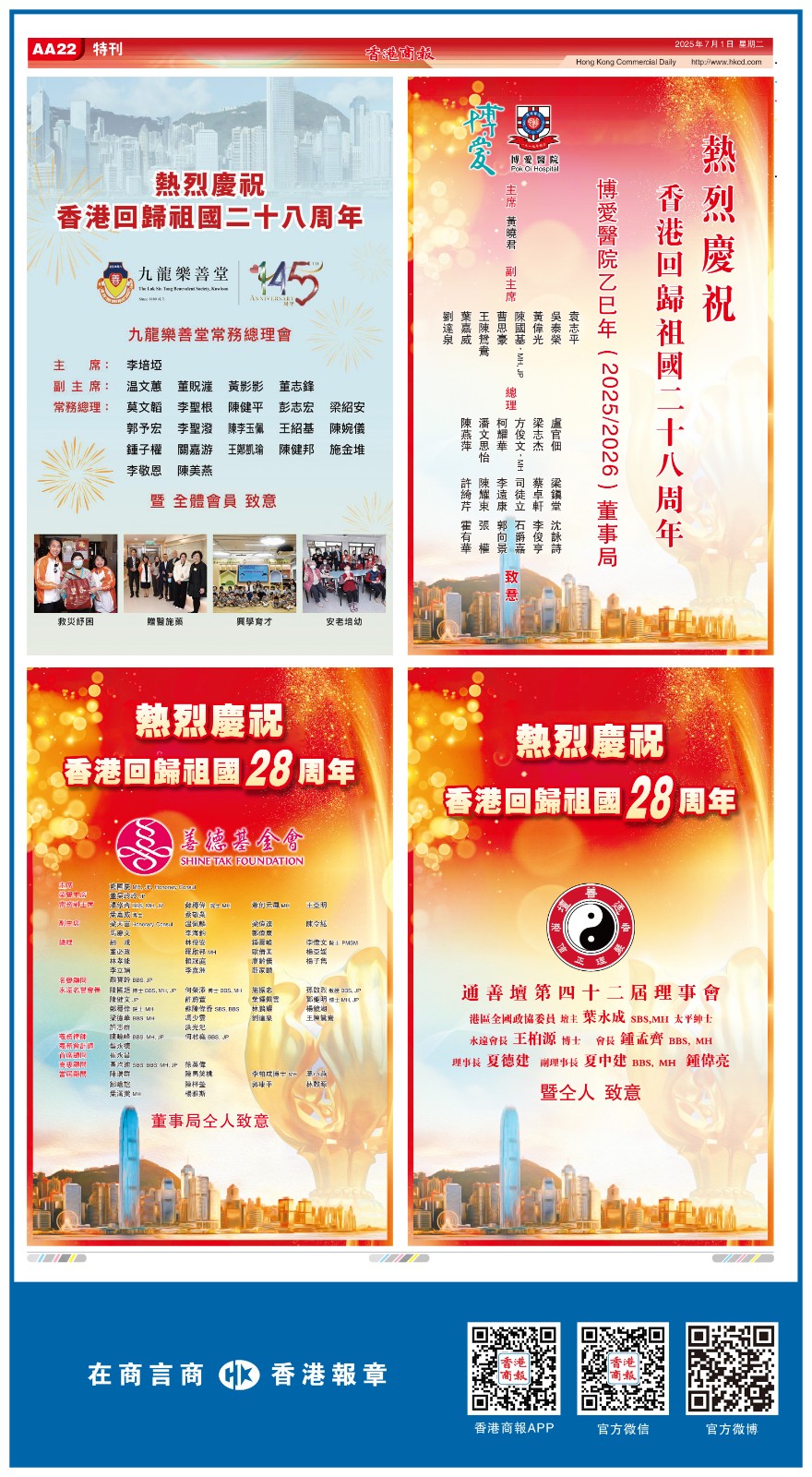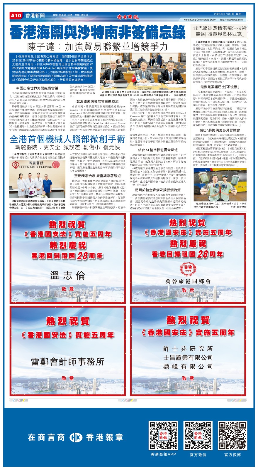 共賀香港回歸祖國28周年