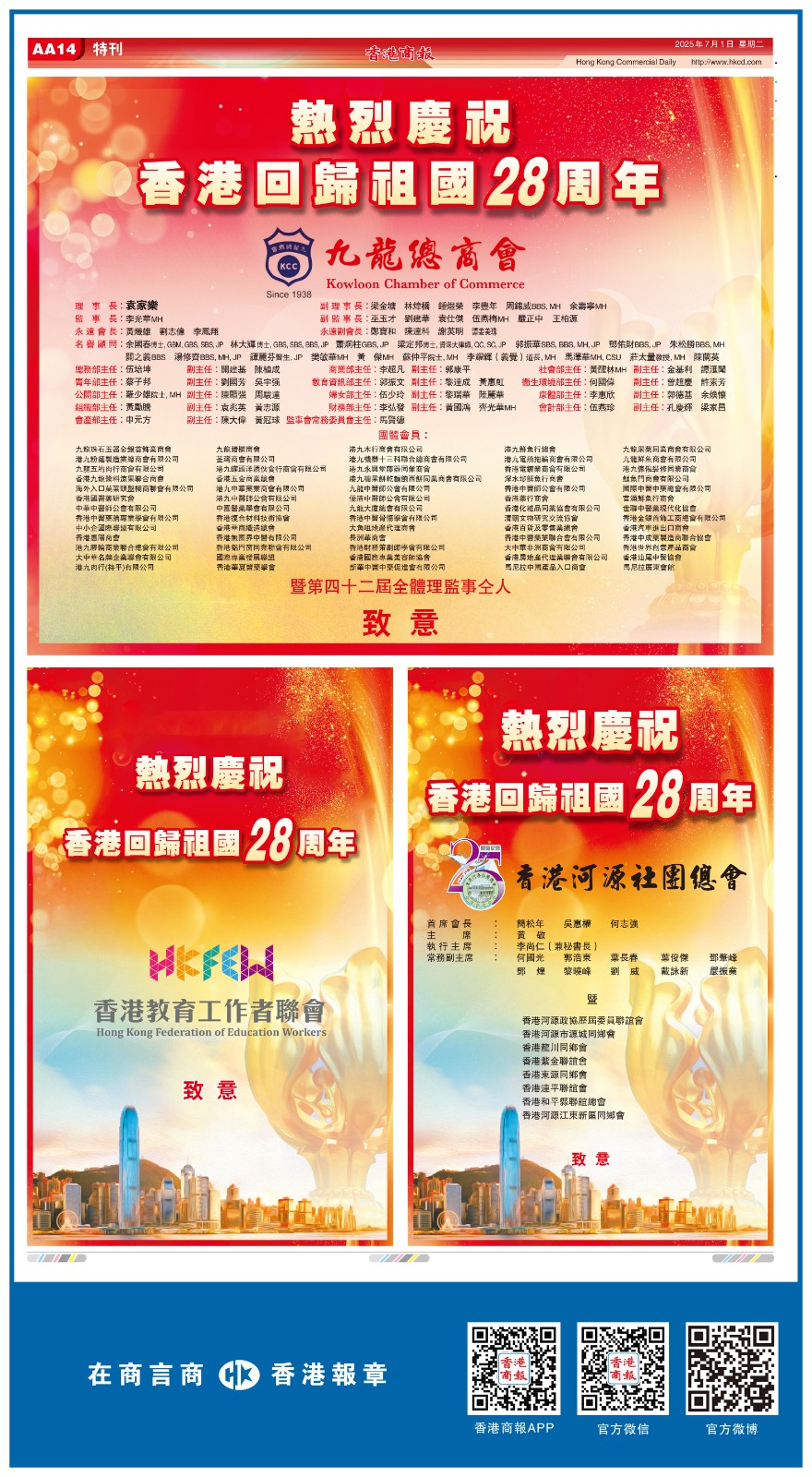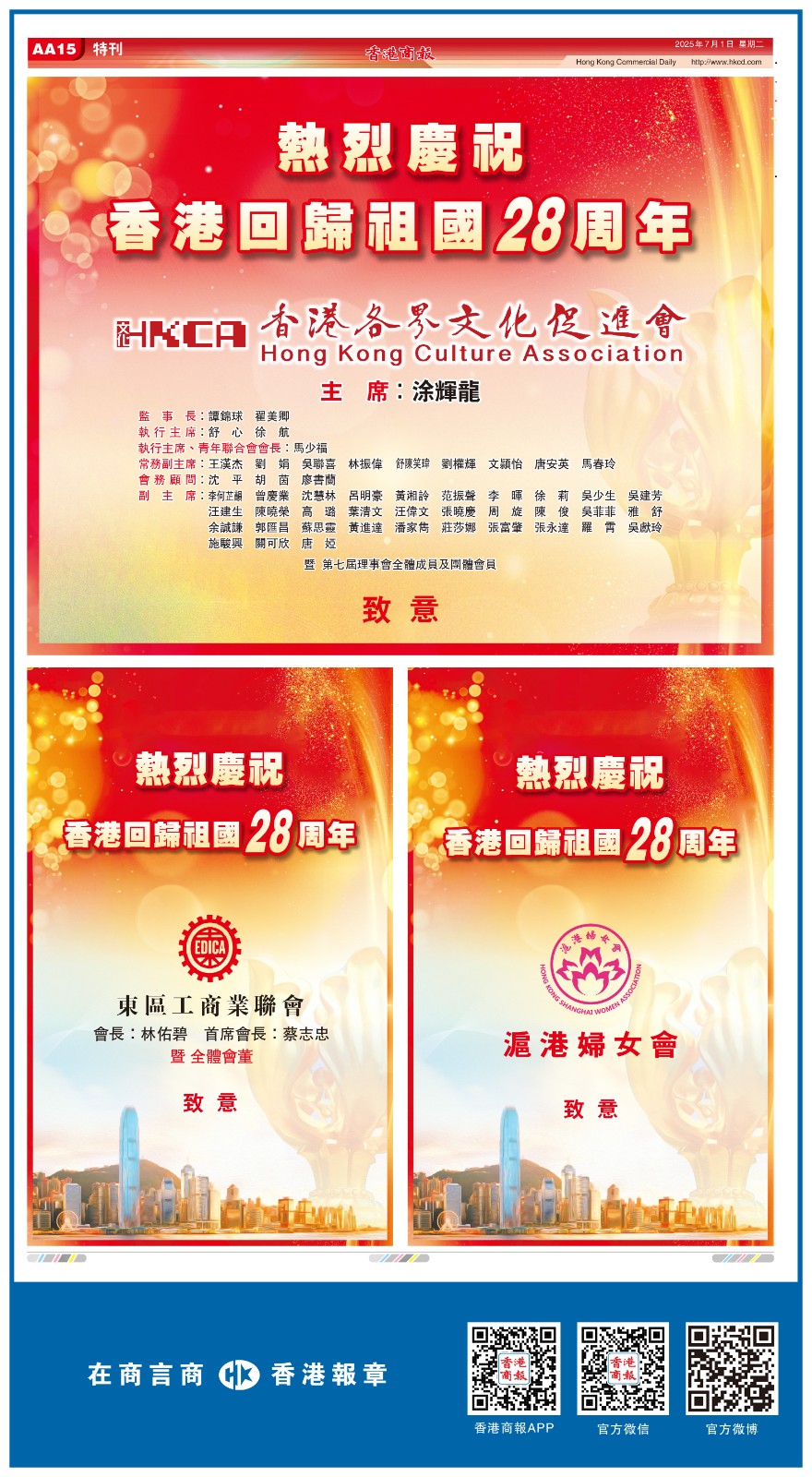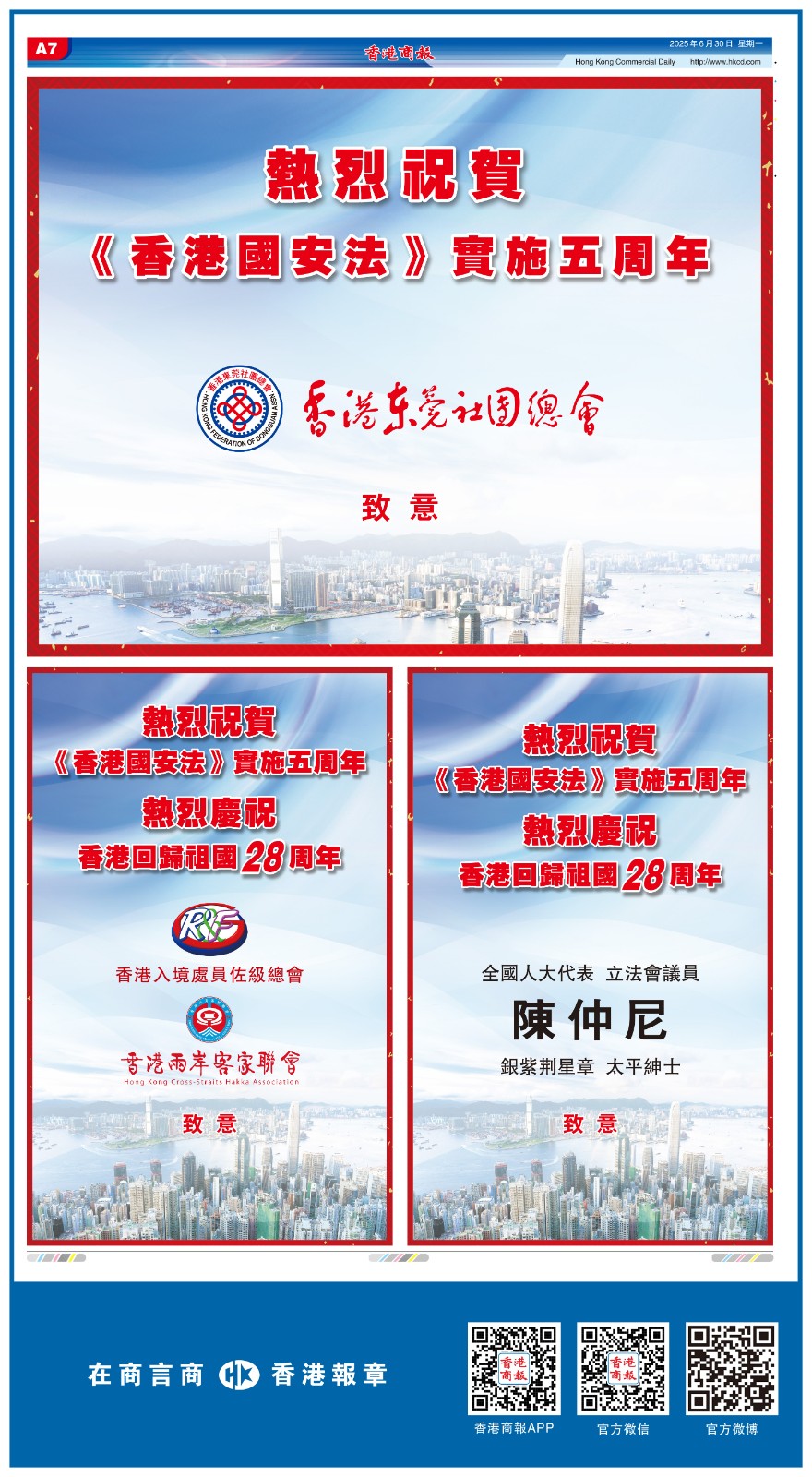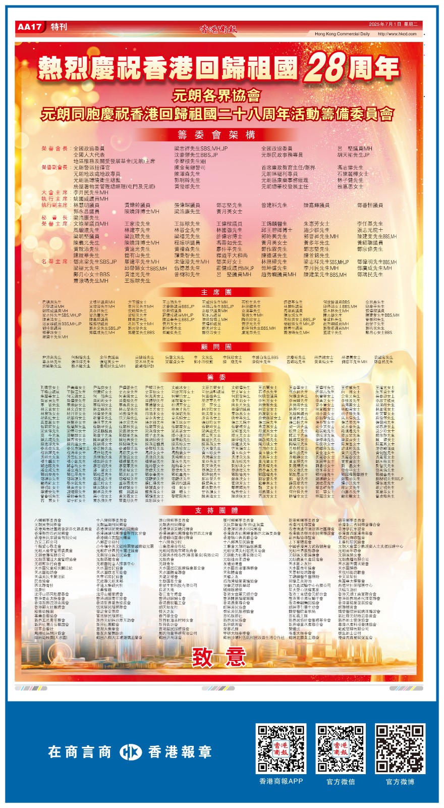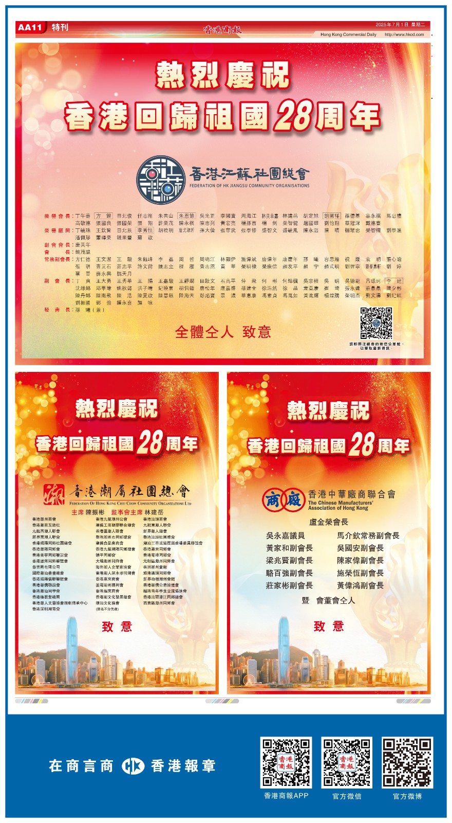 共賀香港回歸祖國28周年