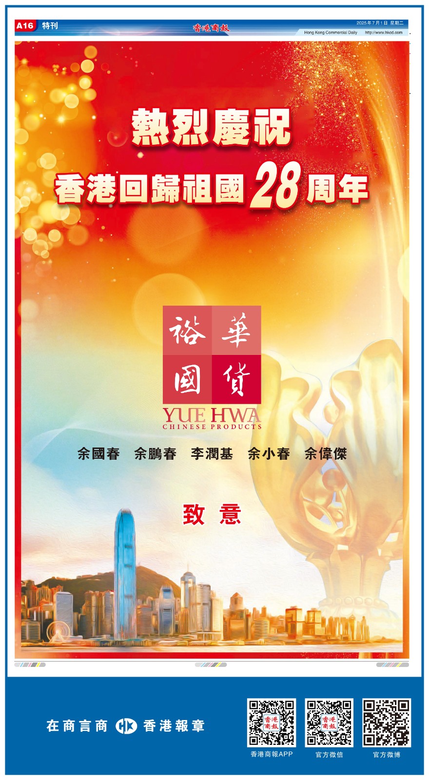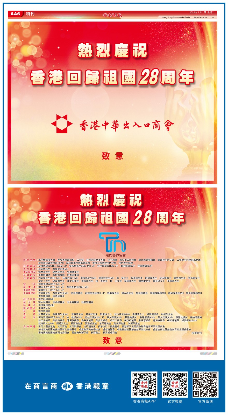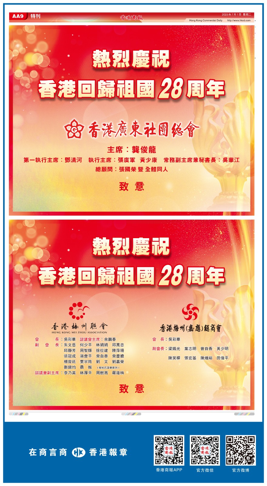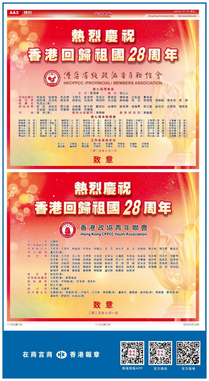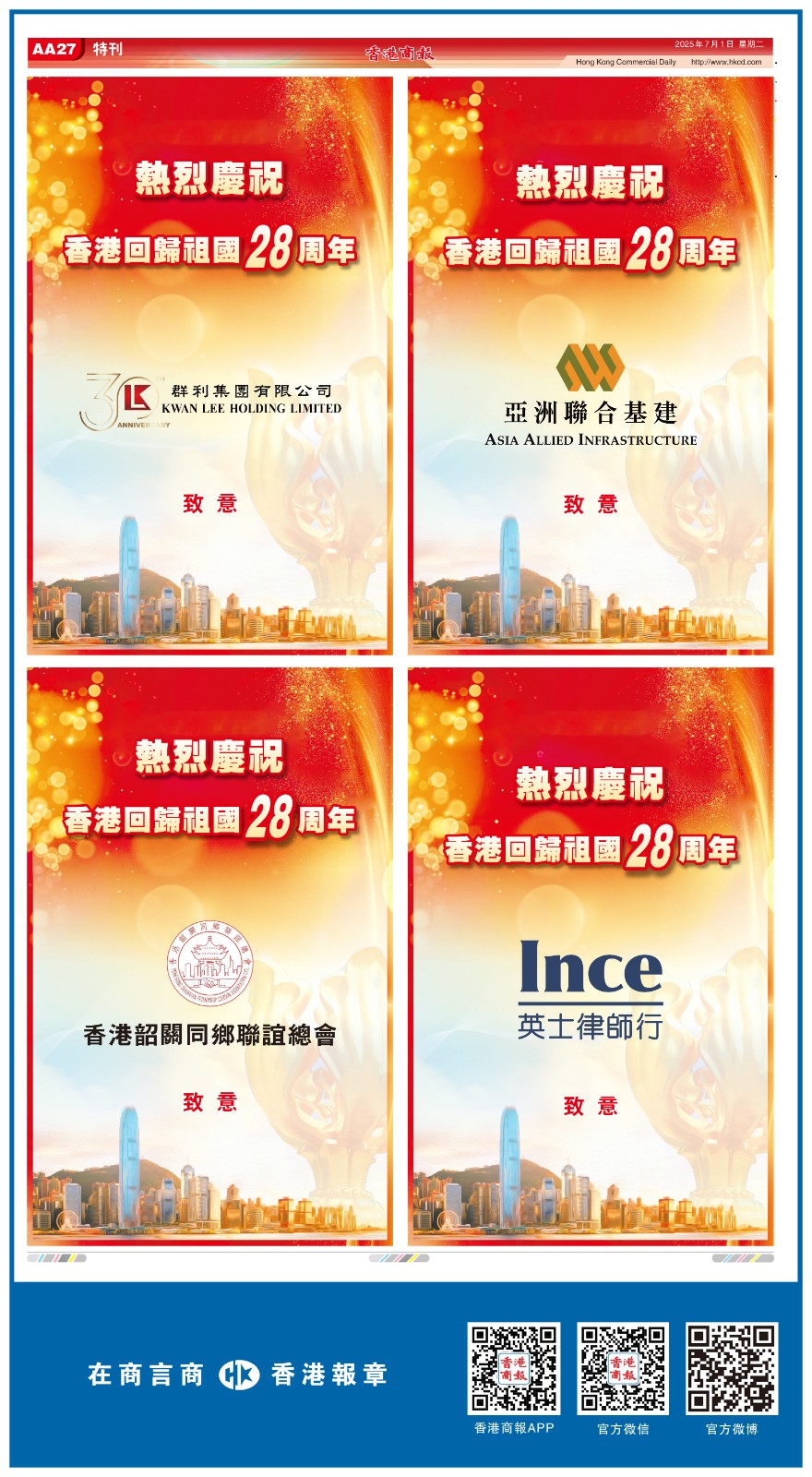 共賀香港回歸祖國28周年