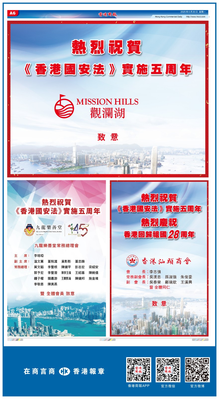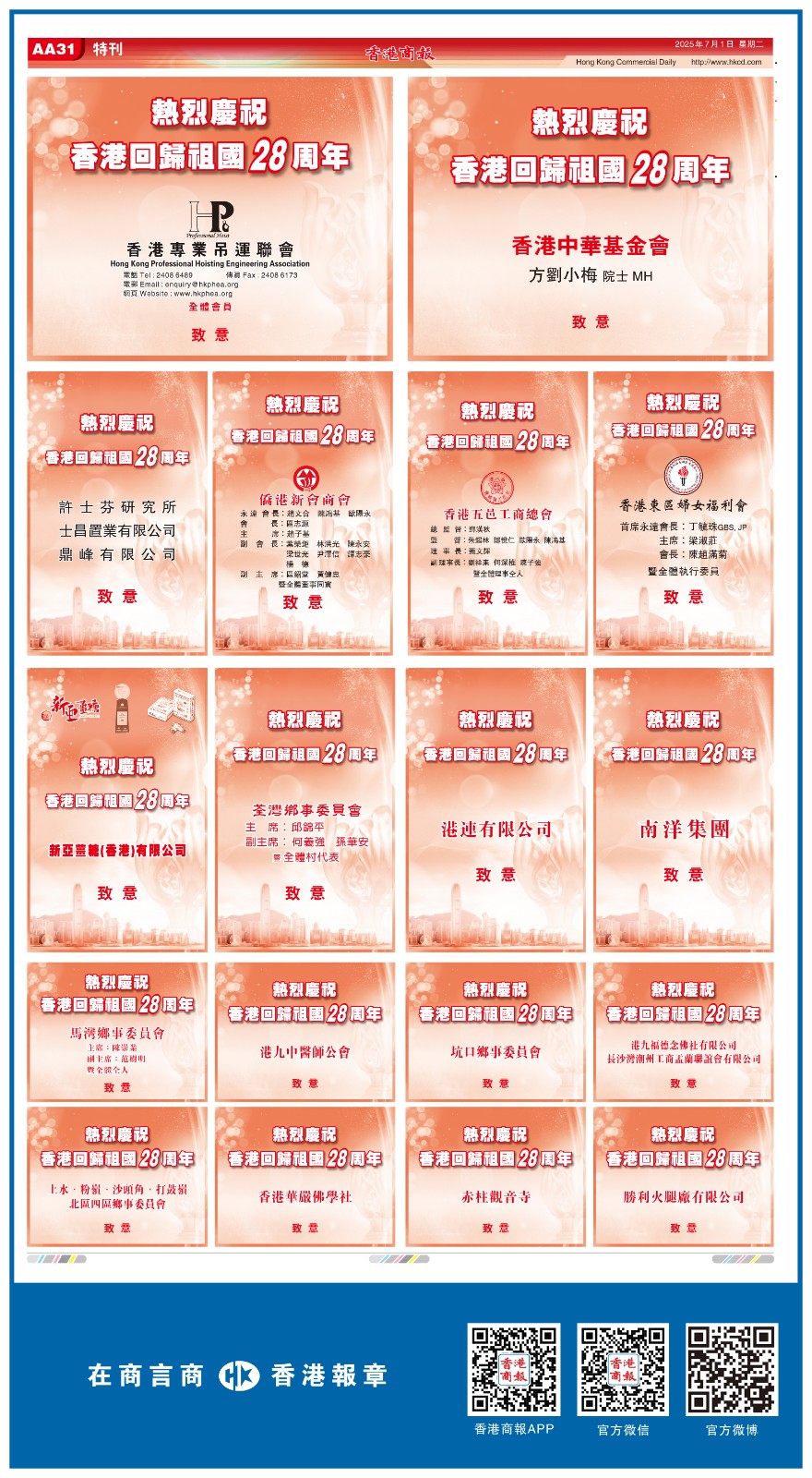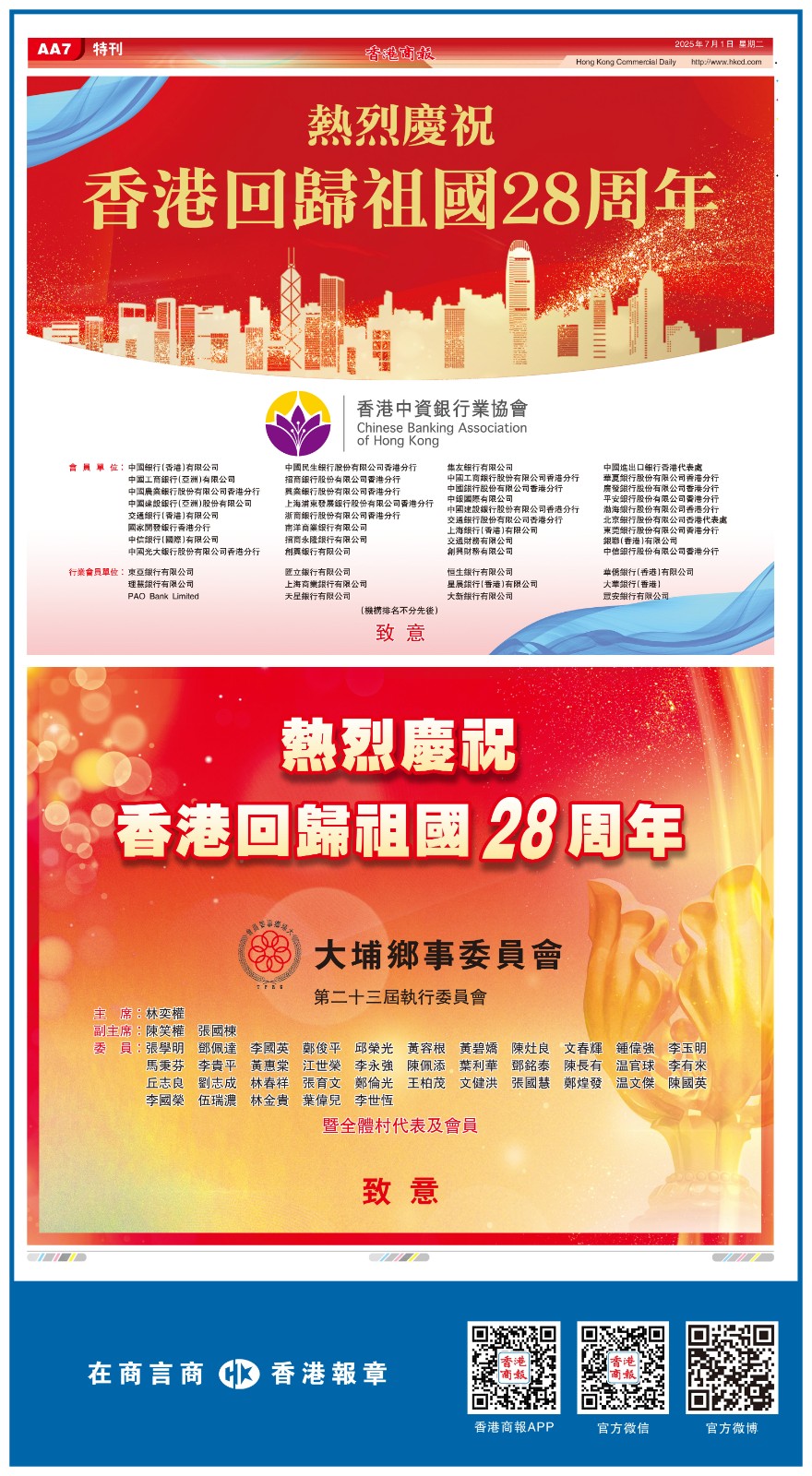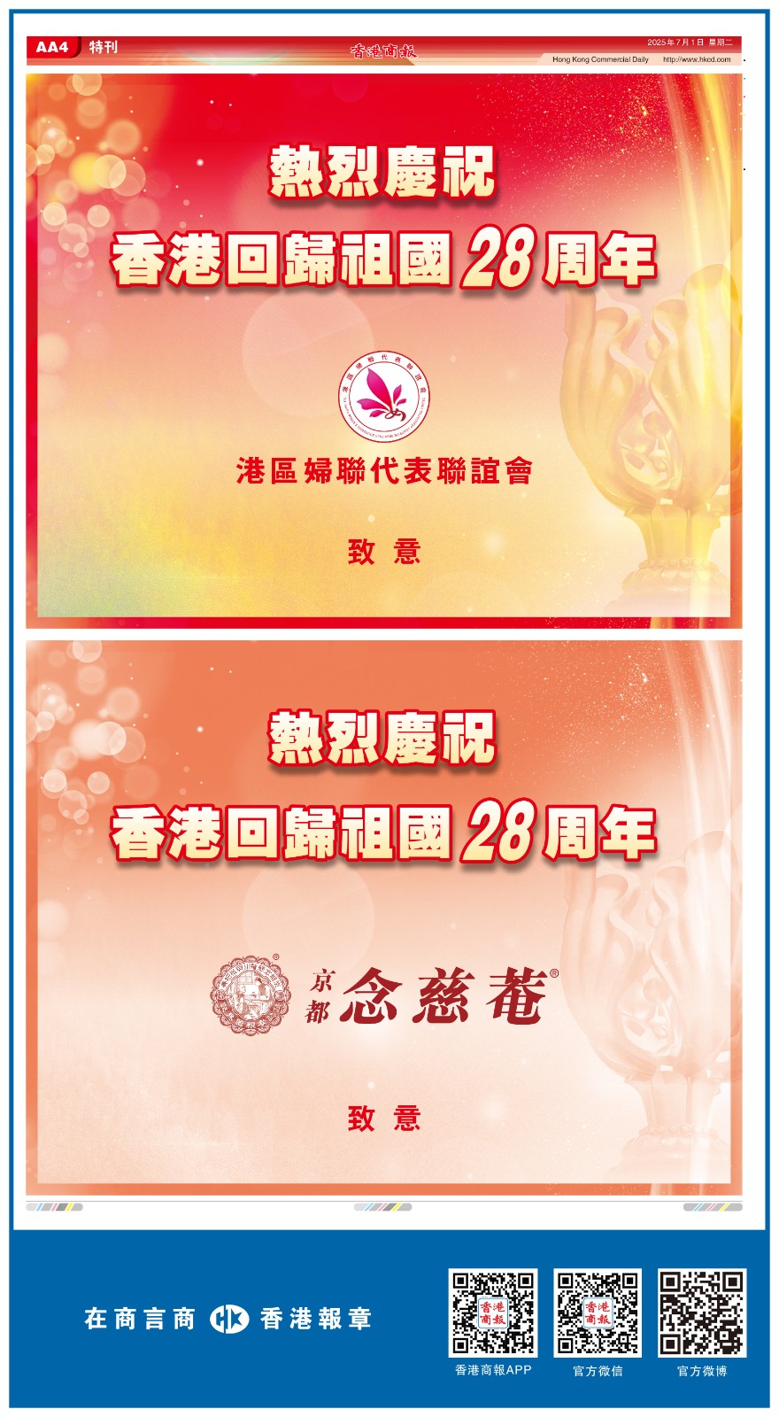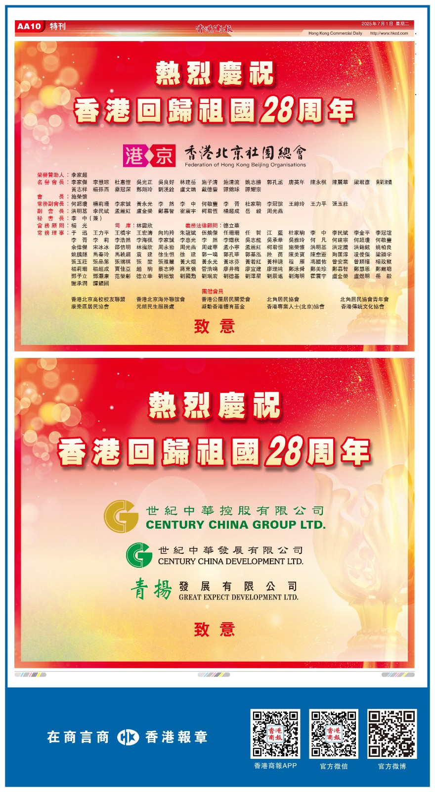 共賀香港回歸祖國28周年