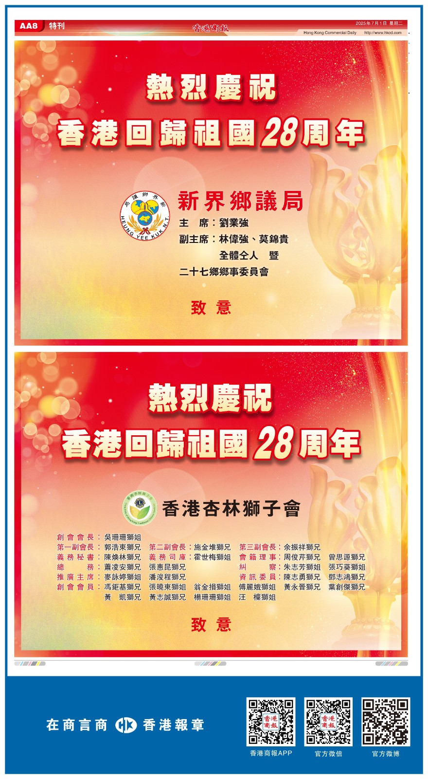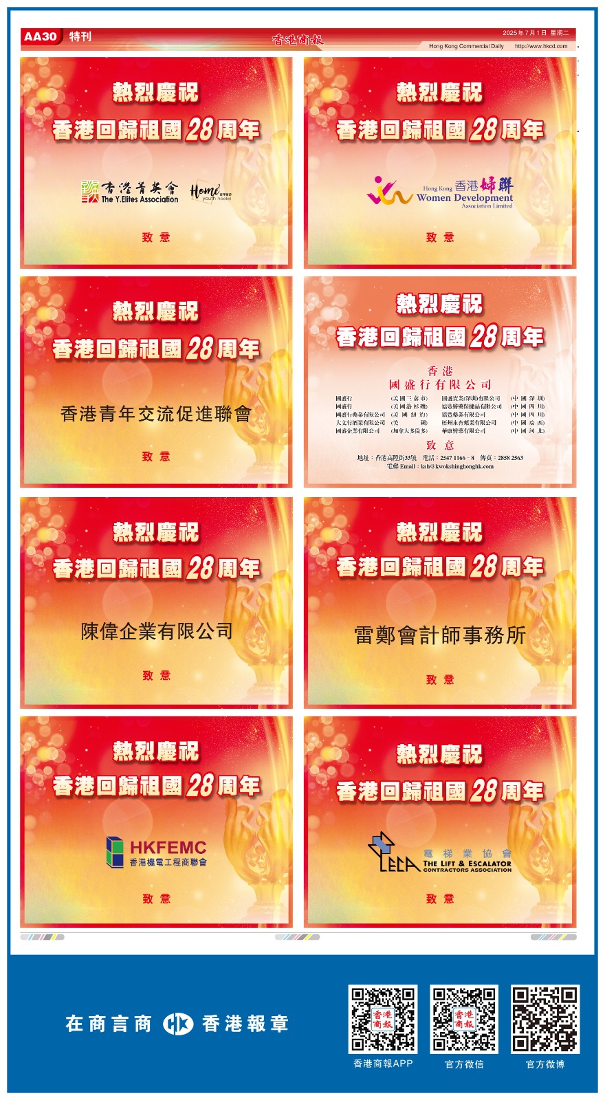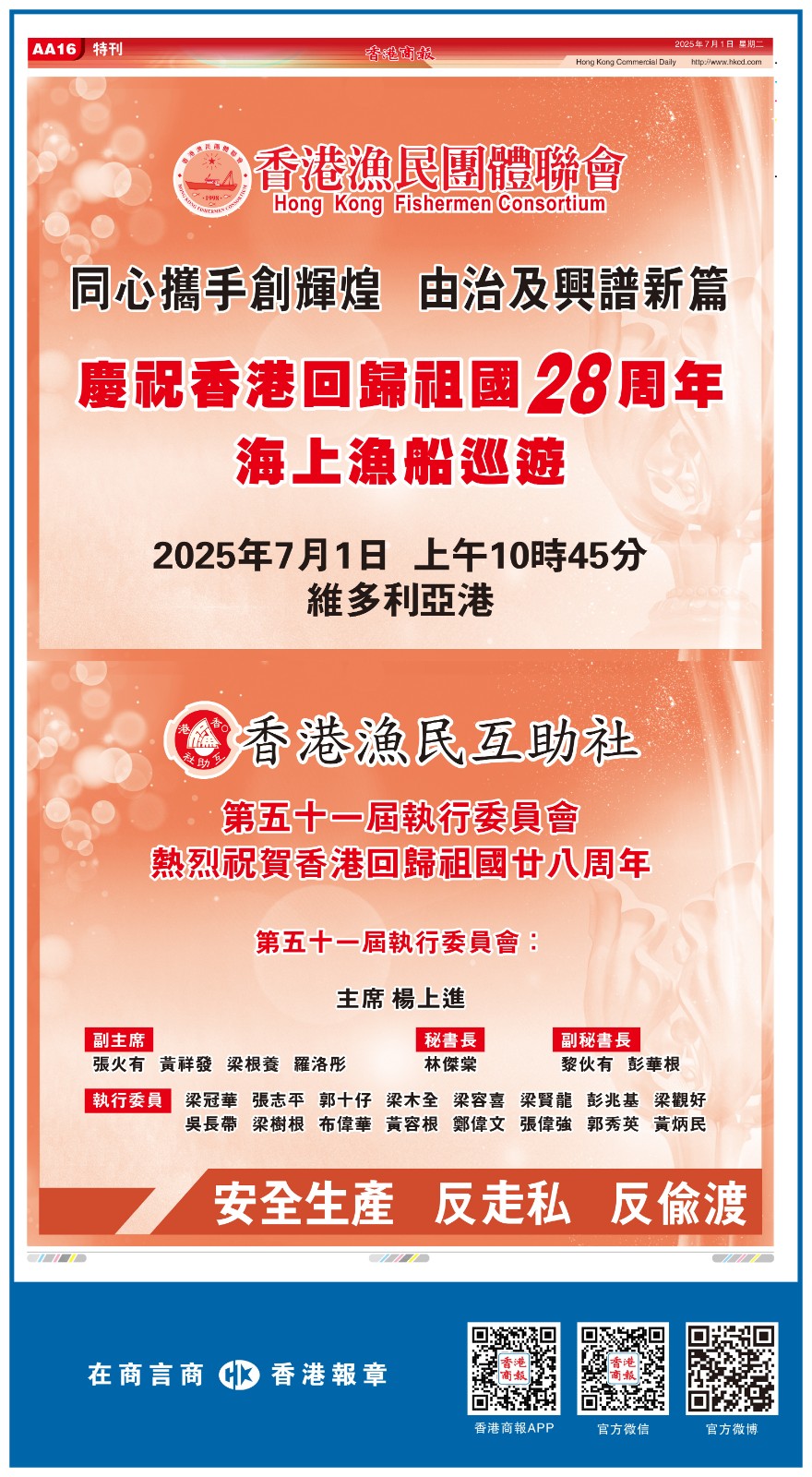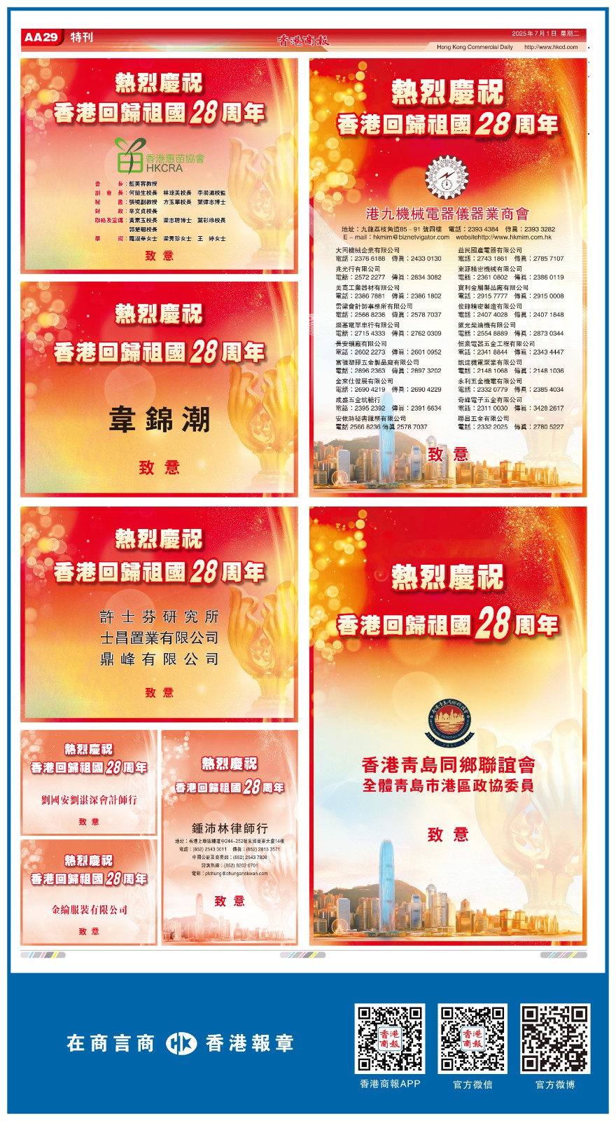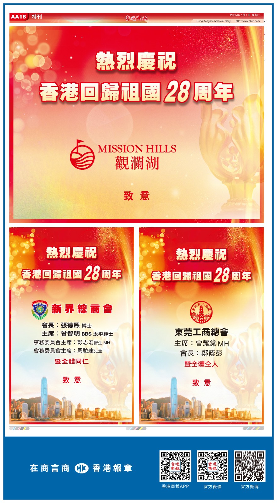 共賀香港回歸祖國28周年