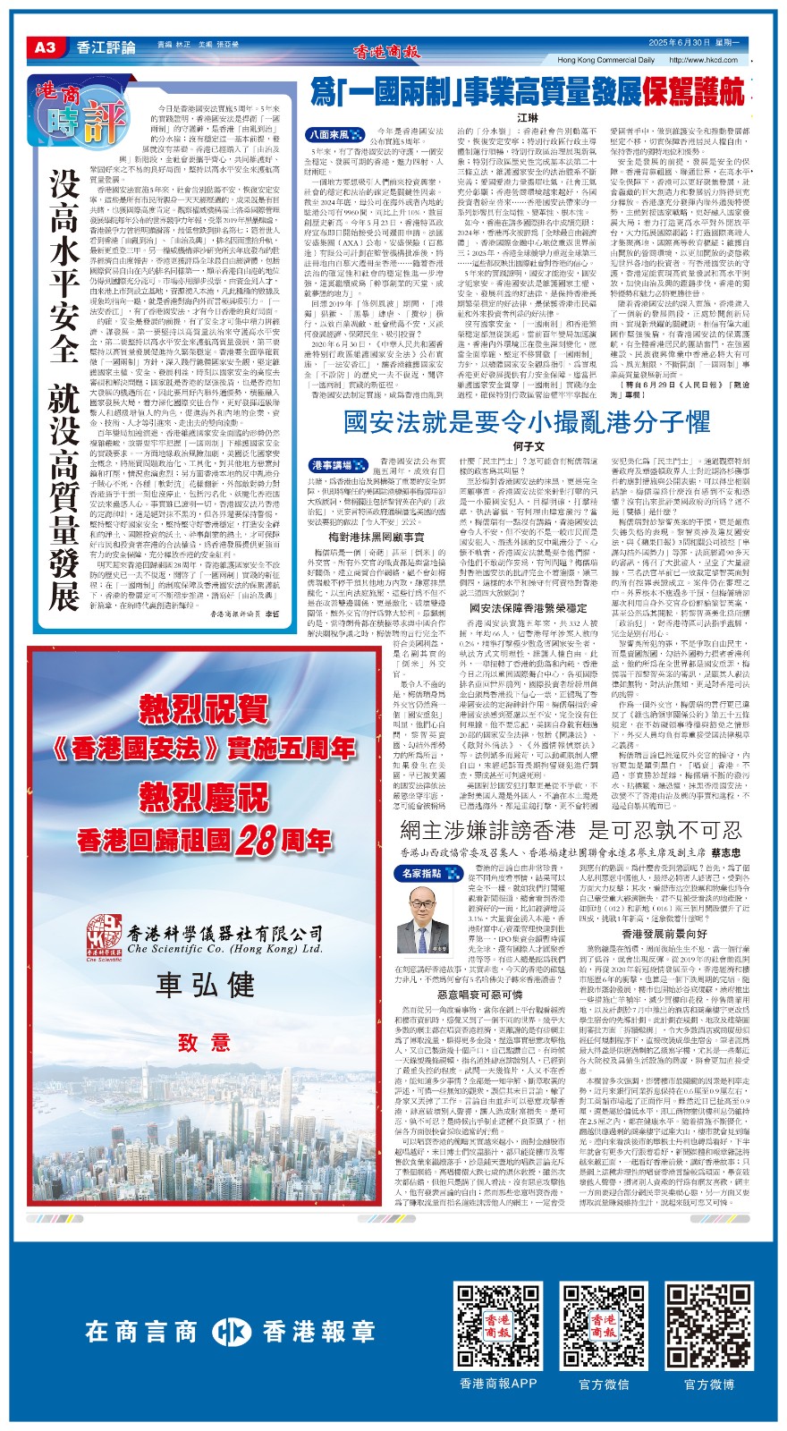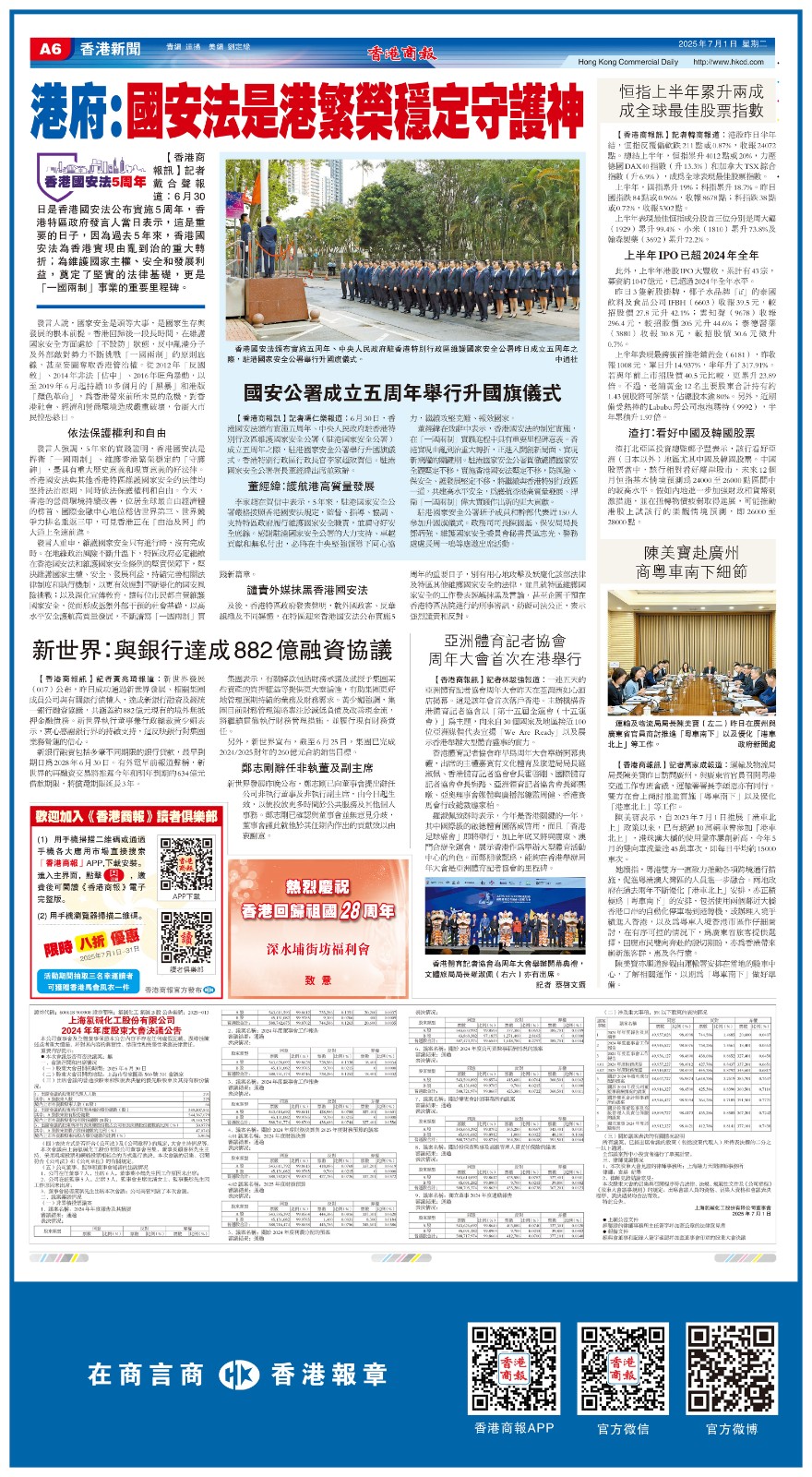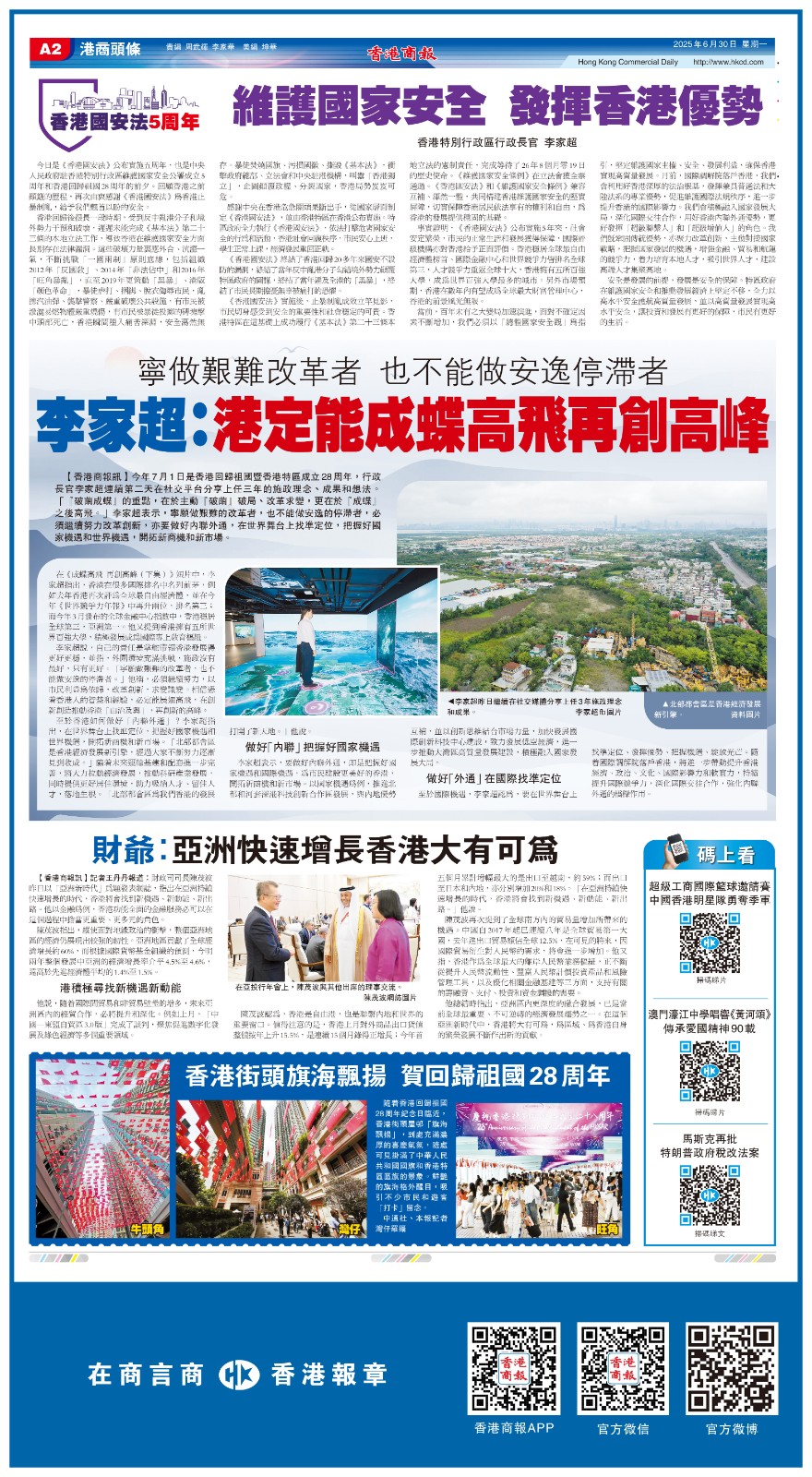 《香港國安法》實施五周年的精彩版面