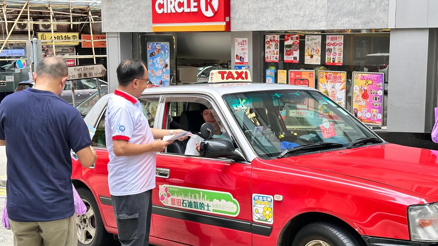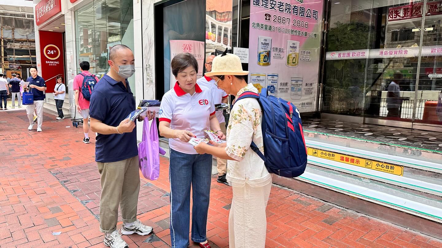 東區警區人員昨日(23日)聯同港島交通部道路安全組、東區道路安全運動宣傳委員會委員,到東區交通黑點英皇道與長康街交界一帶派發道路安全宣傳單張及小禮品。