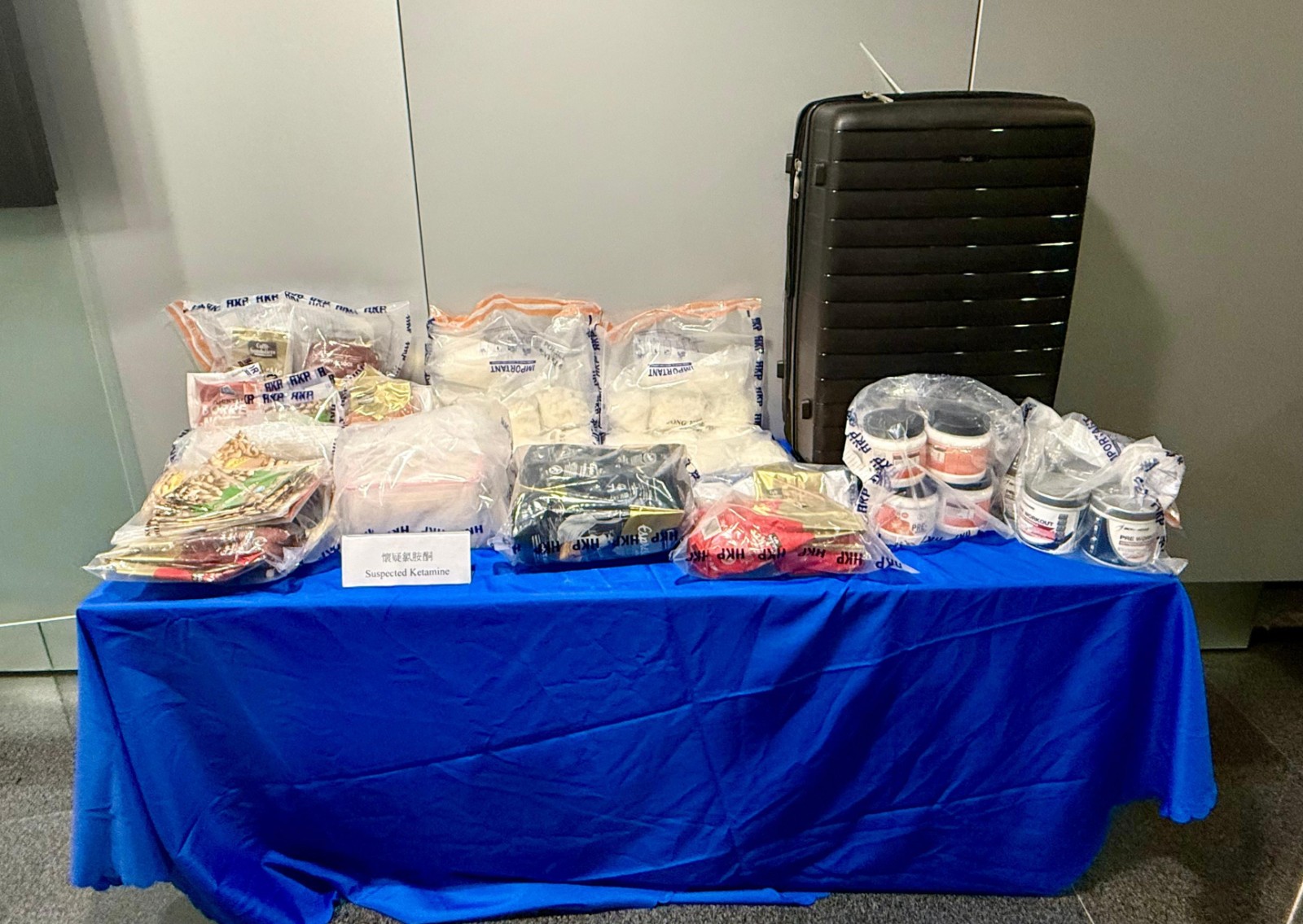毒品調查科行動組高級督察陳源勳今日(3日)表示,前日(1日)下午展開行動,突擊搜查目標毒品儲存倉,發現一名男子正處理收藏在食品包裝內的懷疑氯胺酮,隨即將該名男子拘捕,,涉嫌「販運危險藥物」罪。經點算後,檢獲共重26公斤懷疑氯胺酮。至同日晚上,探員在大埔一個私人屋苑附近再拘捕一名男子,調查得知他涉嫌安排毒品送到上述儲存倉,並招攬及指使同案被捕人處理懷疑氯胺酮,涉嫌「串謀販運危險藥物」罪。