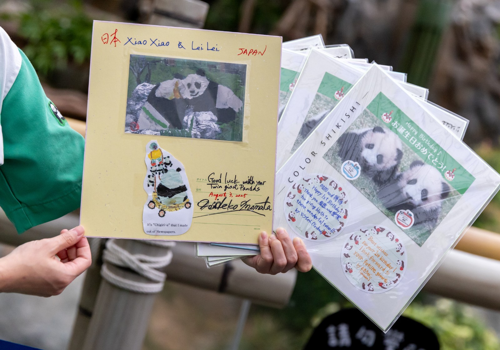 日本粉絲們送上熊貓肖像的自製生日卡,祝願「加加」與「得得」快高長大、健康平安。