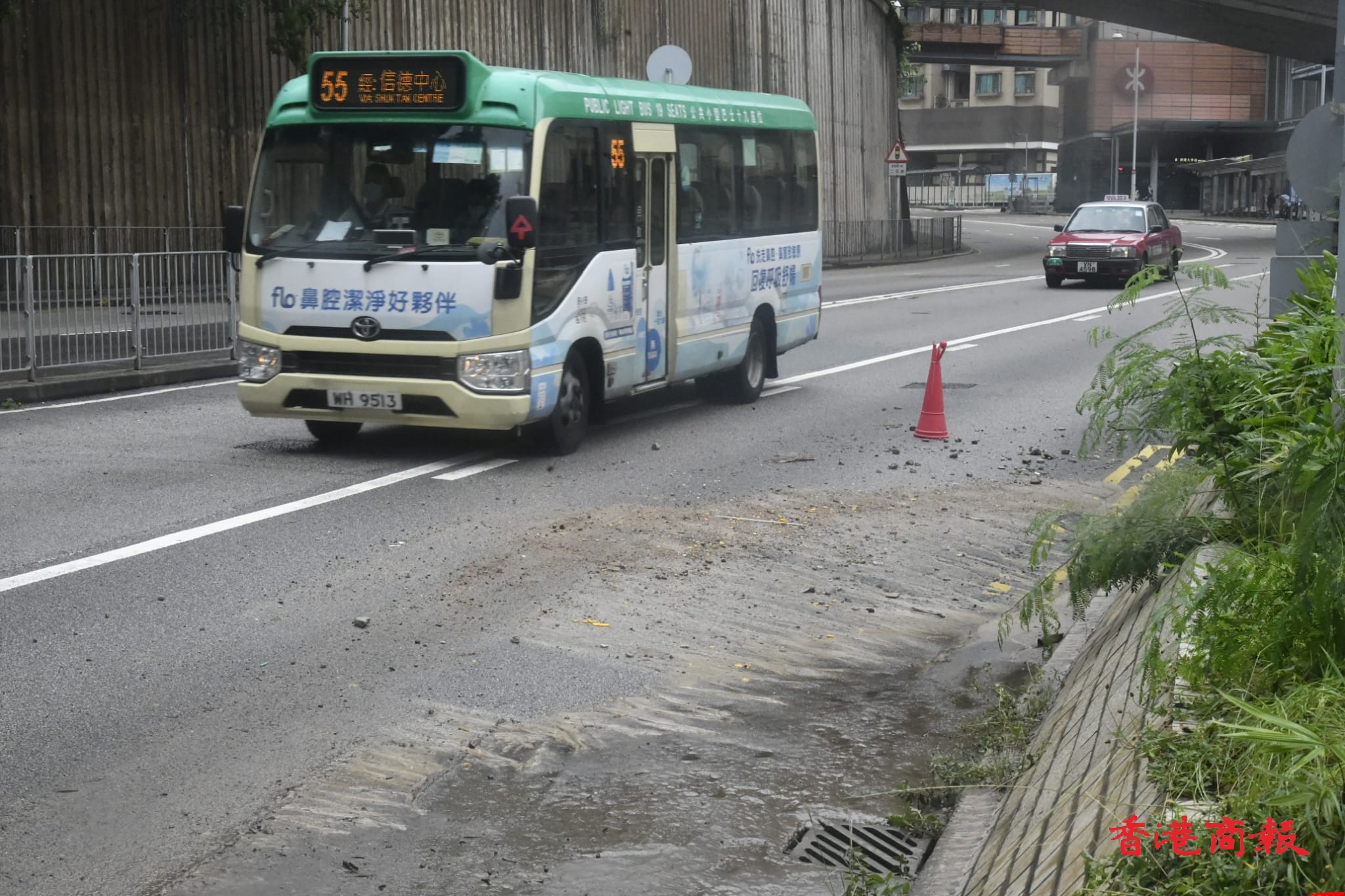 記者其後轉至港大本部大樓對出的薄扶林道,有消防員正切割有下墜風險的大樹,部分路面仍有待清理的樹枝及沙石。居民葉小姐說:「今早7時許能正常坐巴士到瑪麗醫院上班,現在下午6時亦能正常坐巴士下班,感覺安全。但今日瑪麗醫院的水浸情況卻是在此工作幾十年首次見到。」