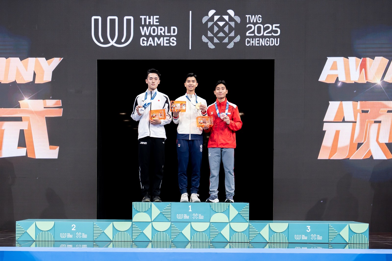 劉慕裳在世運會首日賽事,於女子空手道個人形項目勇奪金牌,為港隊打響頭炮。今日來到次日賽事,港隊再傳捷報,楊頌熹於武術男子太極拳太極劍全能項目,以總分19.526( 太極拳9.766分、太極劍9.760分)擊敗日本選手ARAYA Tomohiro,贏得金牌。