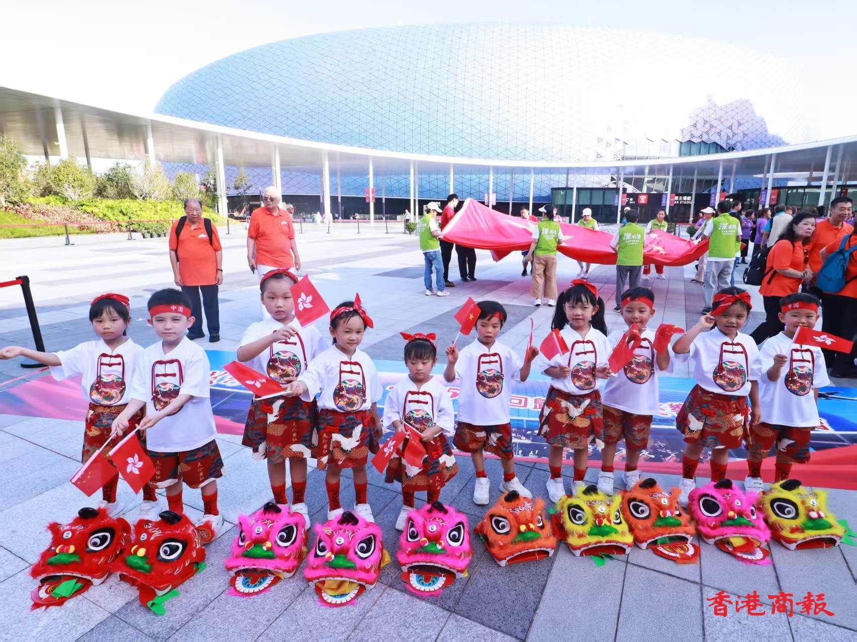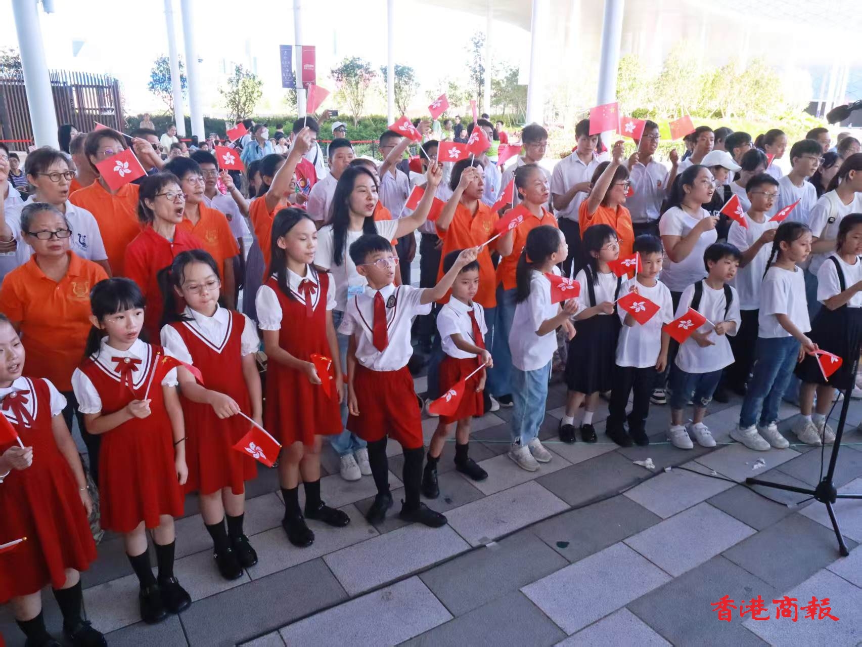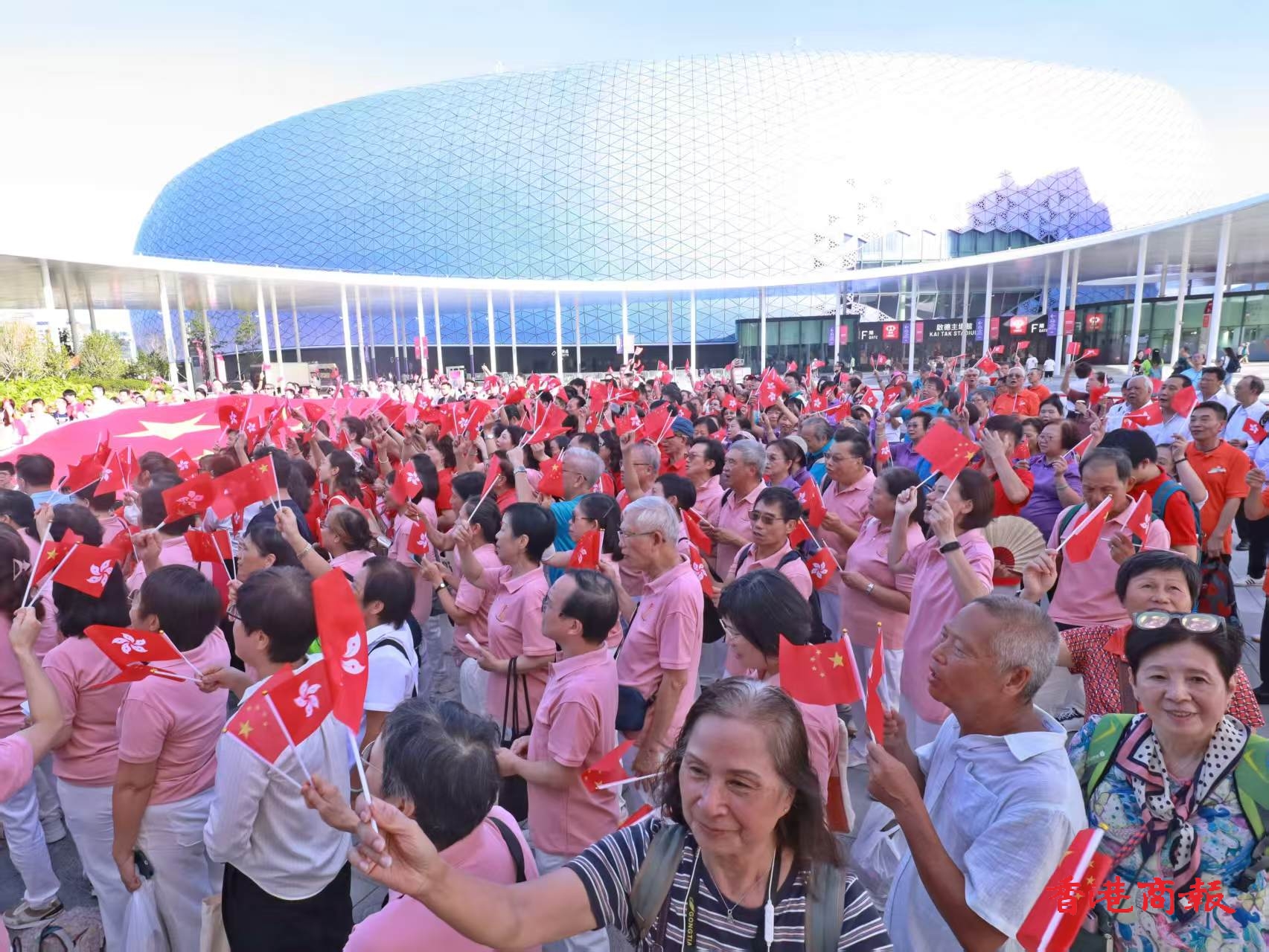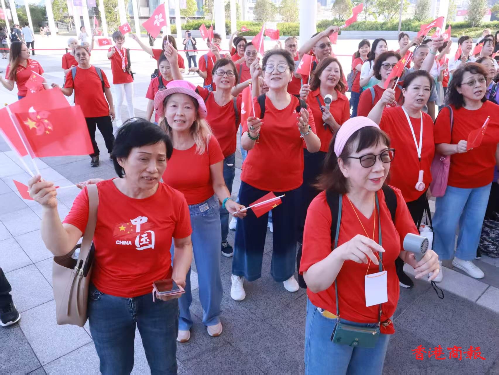 群眾們揮動國旗和特區區旗,場面壯觀。